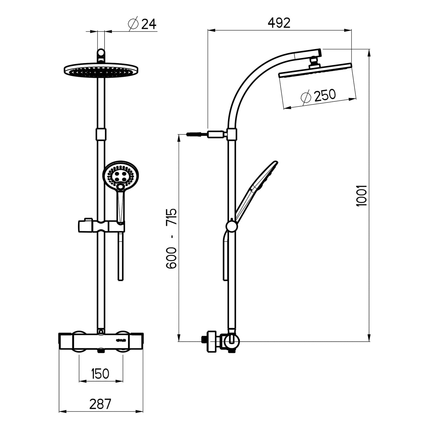 Sturotec Eco-Line 6 l/min Duschsystem rund mit Thermostatarmatur und Kopfbrause 25 cm