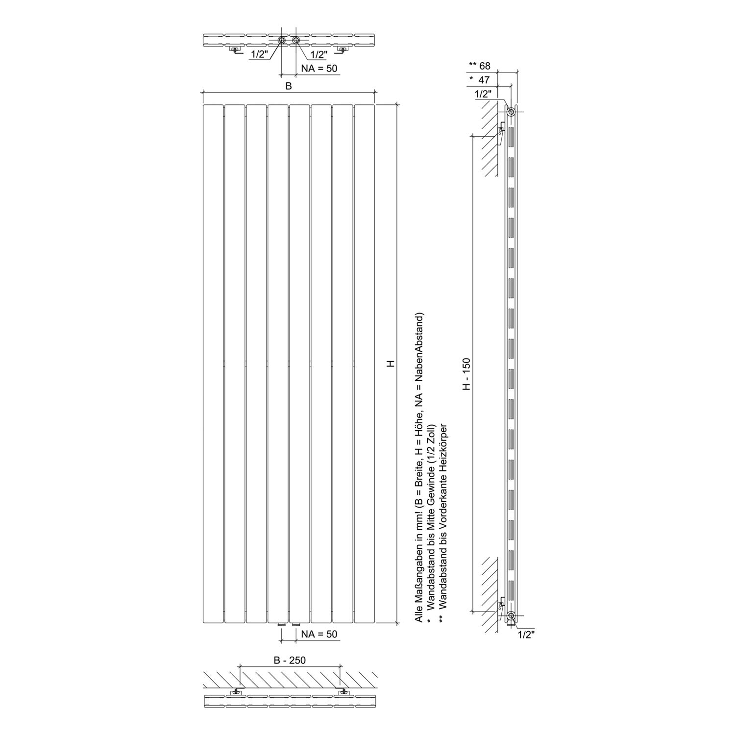 Sturotec Room 1 Heizkörper 44,5 x 180 cm mit Mittelanschluss