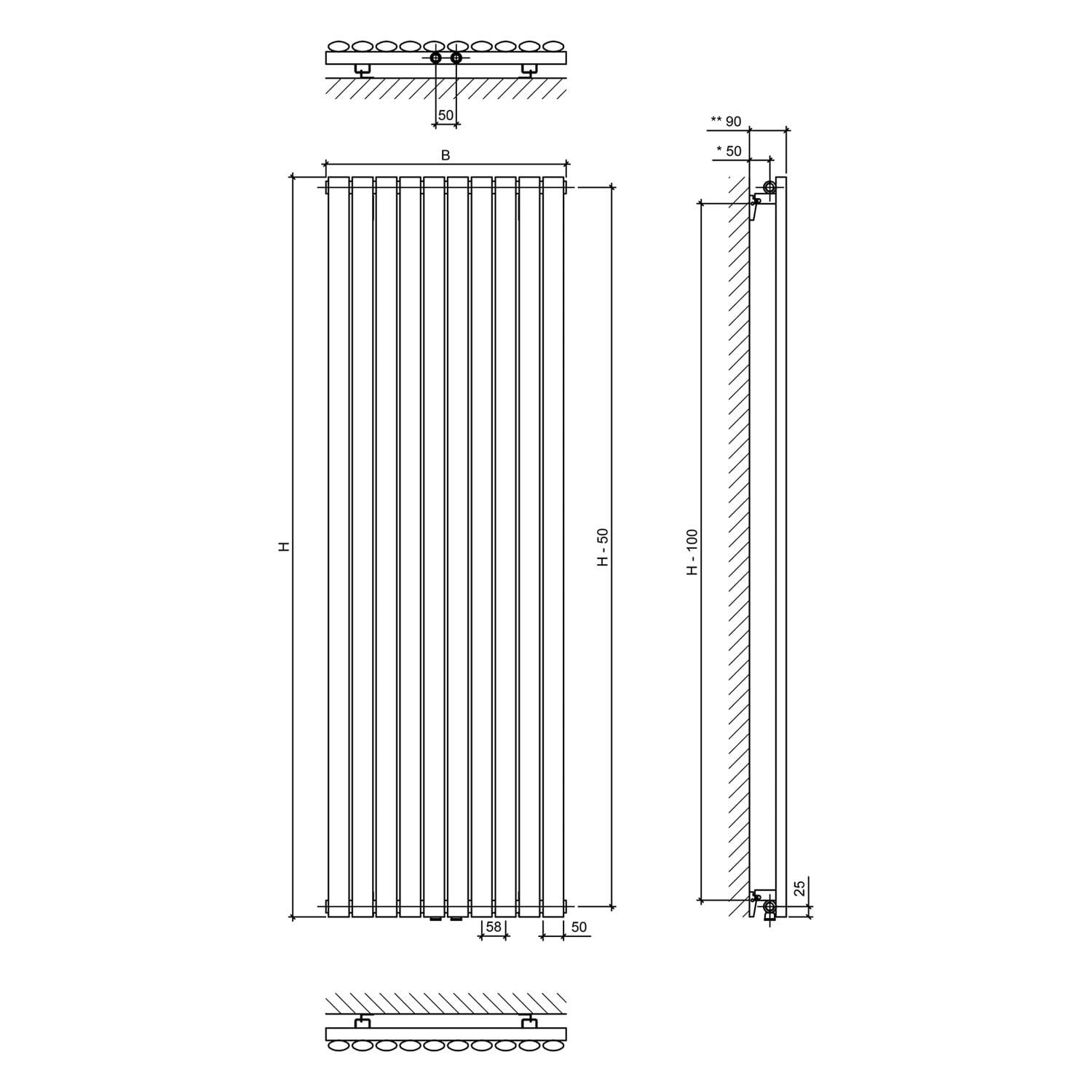 - Ovalprofile vertikal 50 x 25 mm, Rohre horizontal Ø 30 mm
