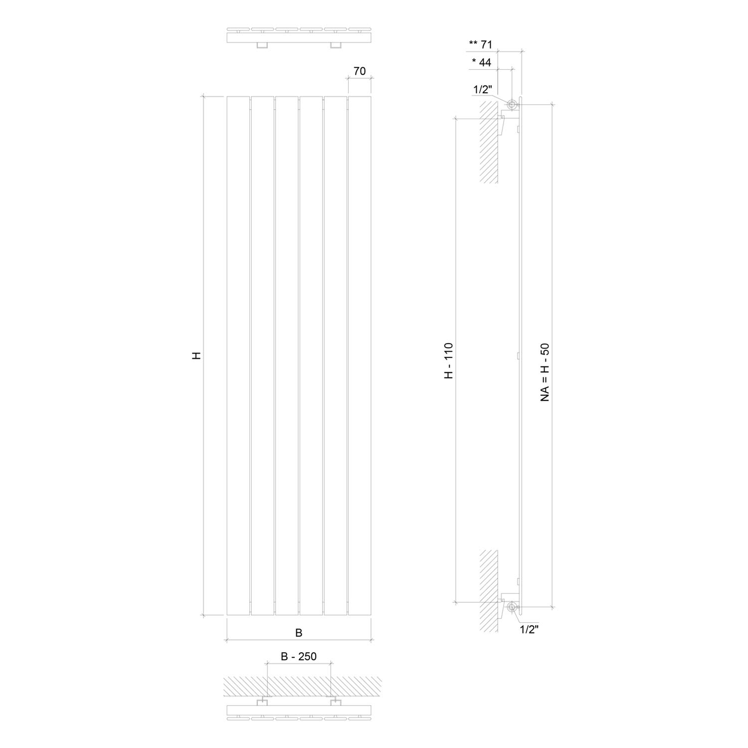 - Präzisionsstahlpaneele senkrecht 70 x 8 x 1,35 mm, Sammelrohre waagerecht Ø 30 x 1,5 mm