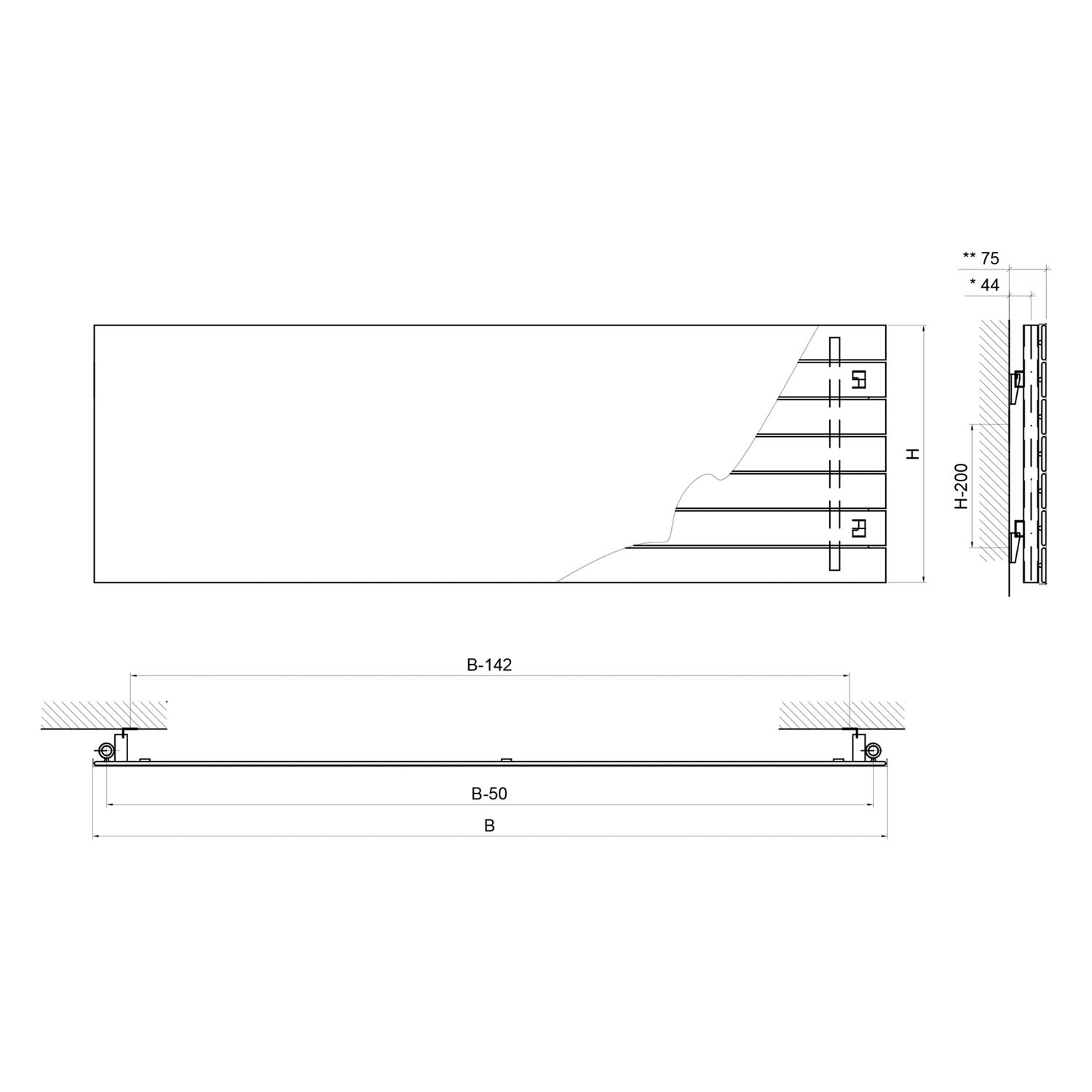 - Präzisionsstahlpaneele horizontal 70 x 8 x 1,35 mm, Sammelrohre vertikal Ø 30 x 1,5 mm