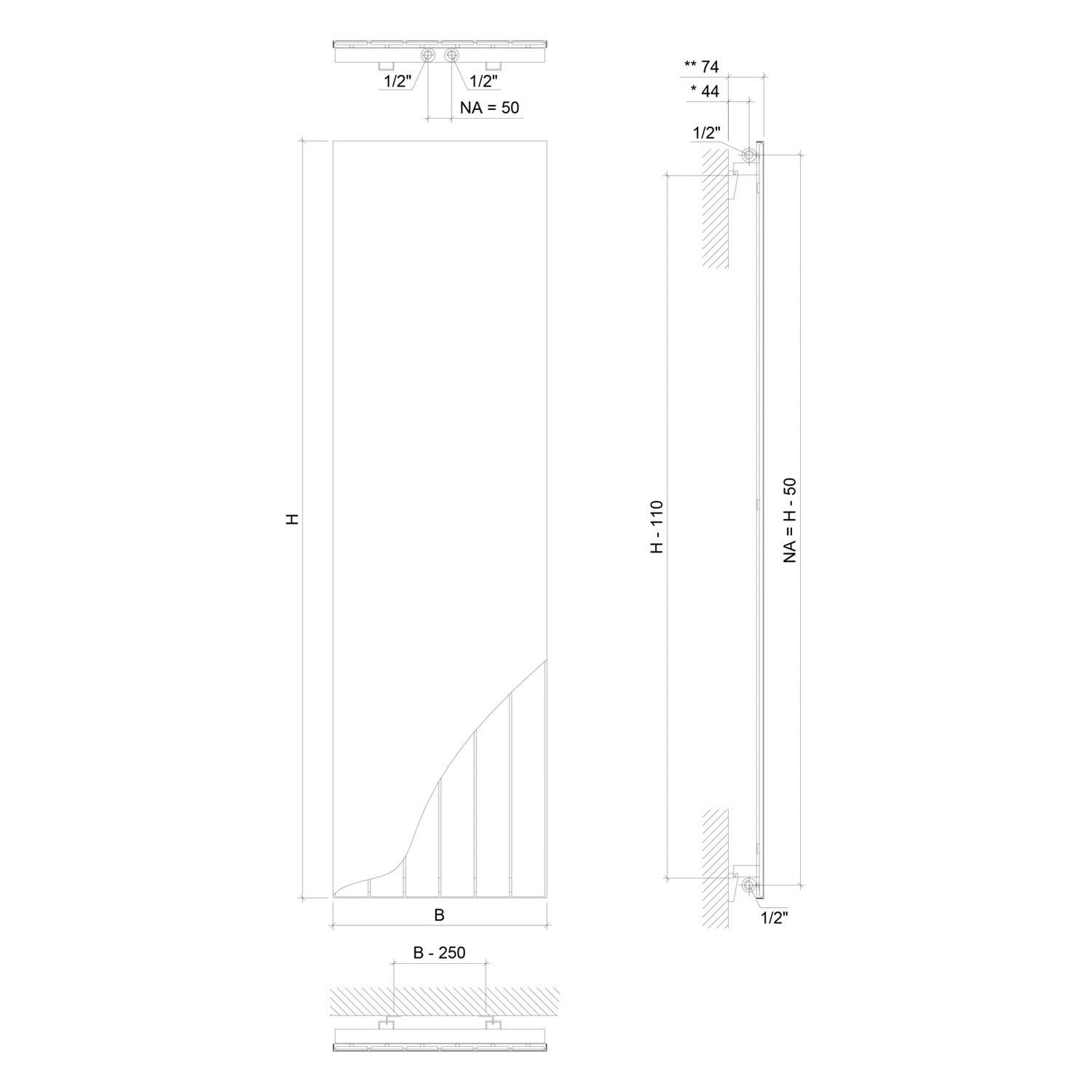 - Präzisionsstahlpaneele senkrecht 70 x 8 x 1,35 mm, Sammelrohre waagerecht Ø 30 x 1,5 mm