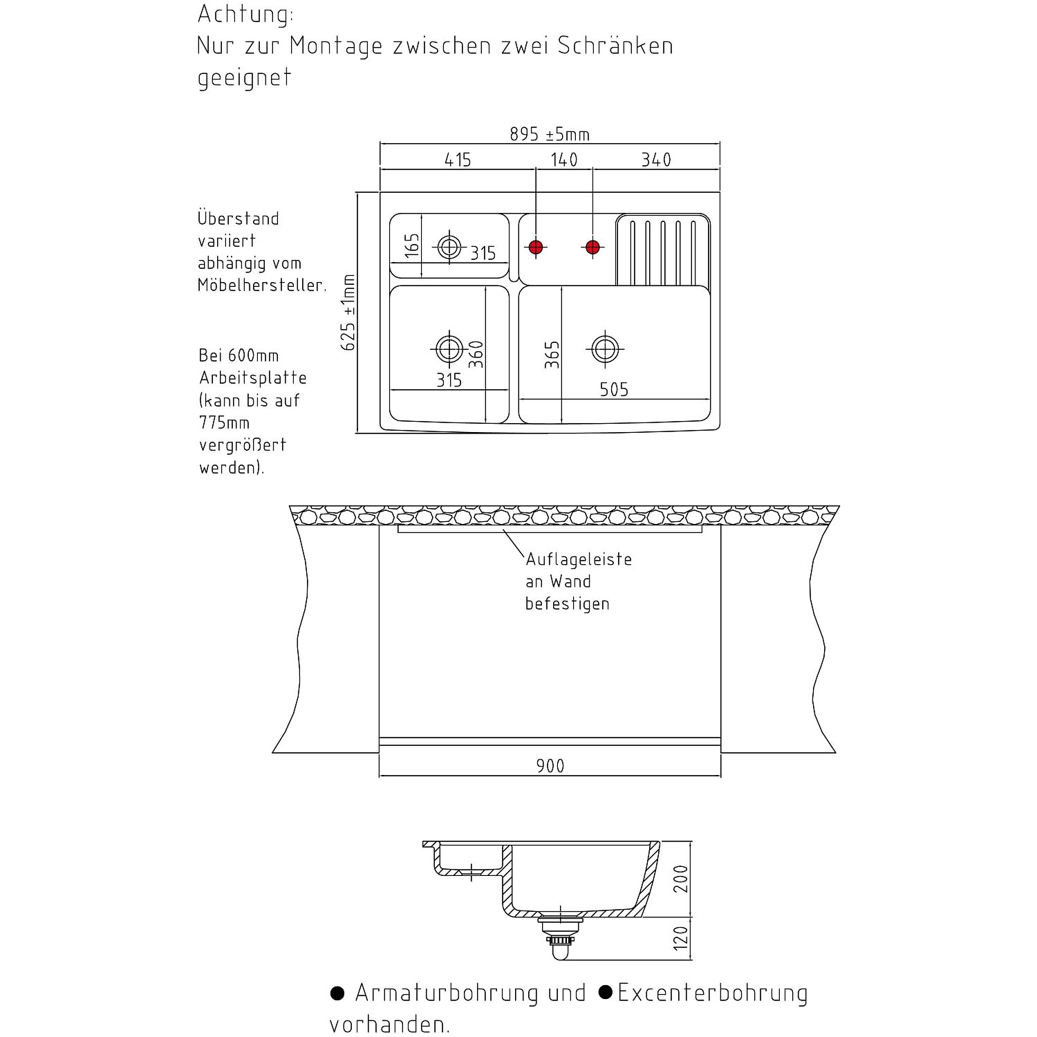 Centra 90 ist ein Sondermaß. Bitte bei Bestellung die genaue Tiefe der Spüle angeben.