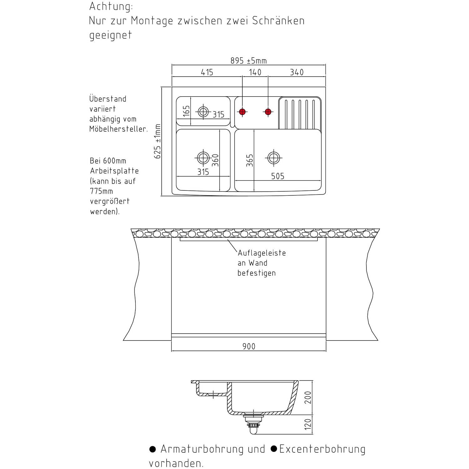 Centra 90 ist ein Sondermaß. Bitte bei Bestellung die genaue Tiefe der Spüle angeben.