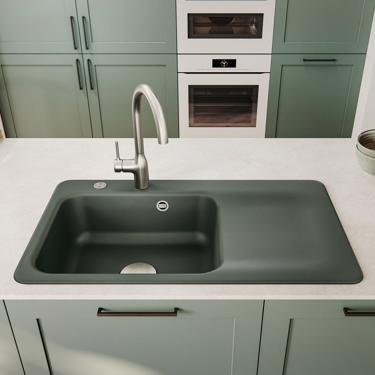 Die Spülbecken von Systemceram beeindrucken mit ihrem organischen Design und der praktischen und leicht zu reinigenden Abtropffläche garantiert jeden Besucher. Zudem bieten sie eine Vielfalt an Farboptionen, die sich in jeden Einrichtungsstil einfügen – sei es Polar für ein modernes Ambiente oder Jasmin für Fans des Boho-Stils.
