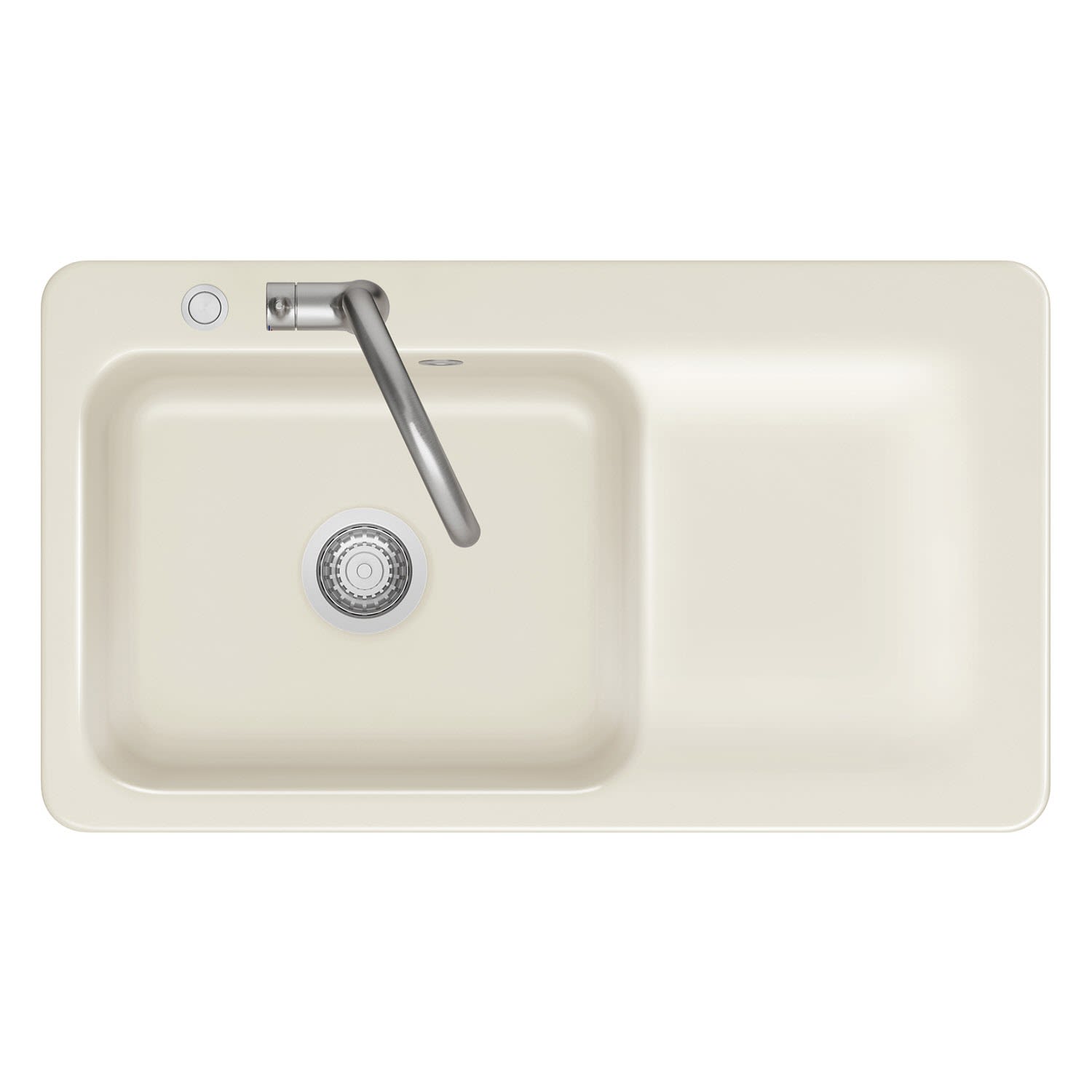 Die Spülbecken von Systemceram beeindrucken mit ihrem organischen Design und der praktischen und leicht zu reinigenden Abtropffläche garantiert jeden Besucher. Zudem bieten sie eine Vielfalt an Farboptionen, die sich in jeden Einrichtungsstil einfügen – sei es Polar für ein modernes Ambiente oder Jasmin für Fans des Boho-Stils.