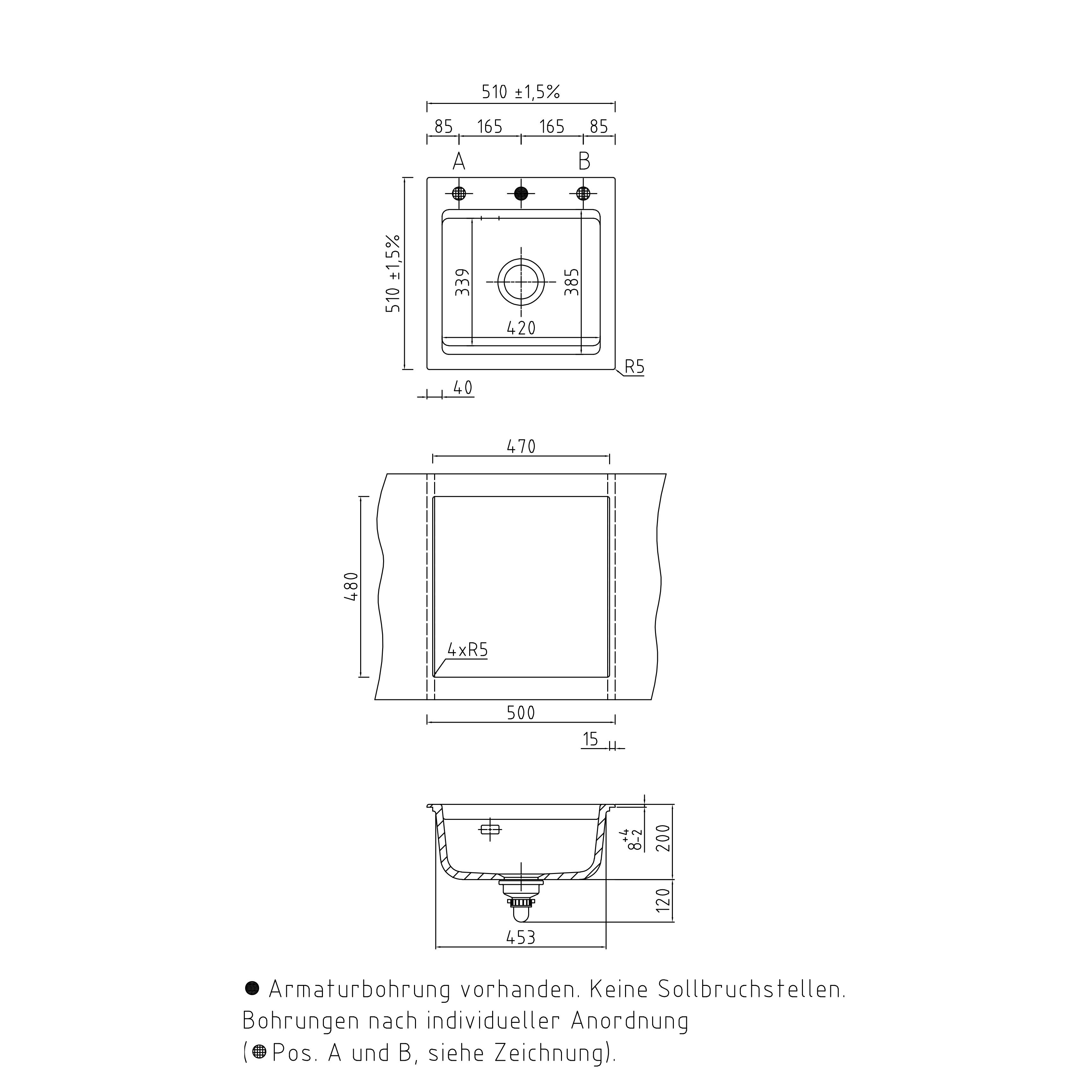 - Armaturbohrung mittig vorhanden