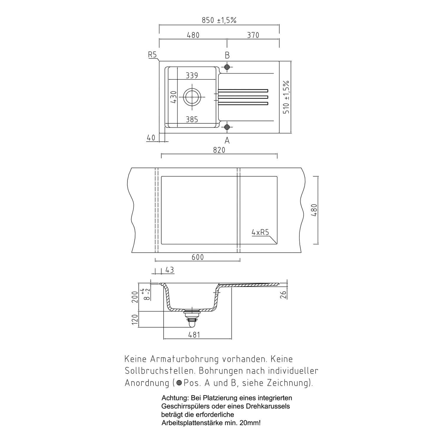 - Ausschnittmaß: B: 82 x T: 48 cm