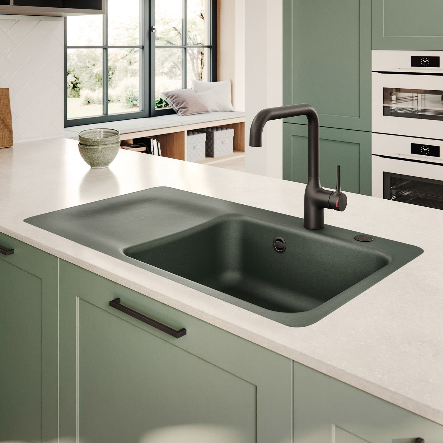 Die Spülbecken von Systemceram beeindrucken mit ihrem organischen Design und der praktischen und leicht zu reinigenden Abtropffläche garantiert jeden Besucher. Zudem bieten sie eine Vielfalt an Farboptionen, die sich in jeden Einrichtungsstil einfügen – sei es Polar für ein modernes Ambiente oder Jasmin für Fans des Boho-Stils.