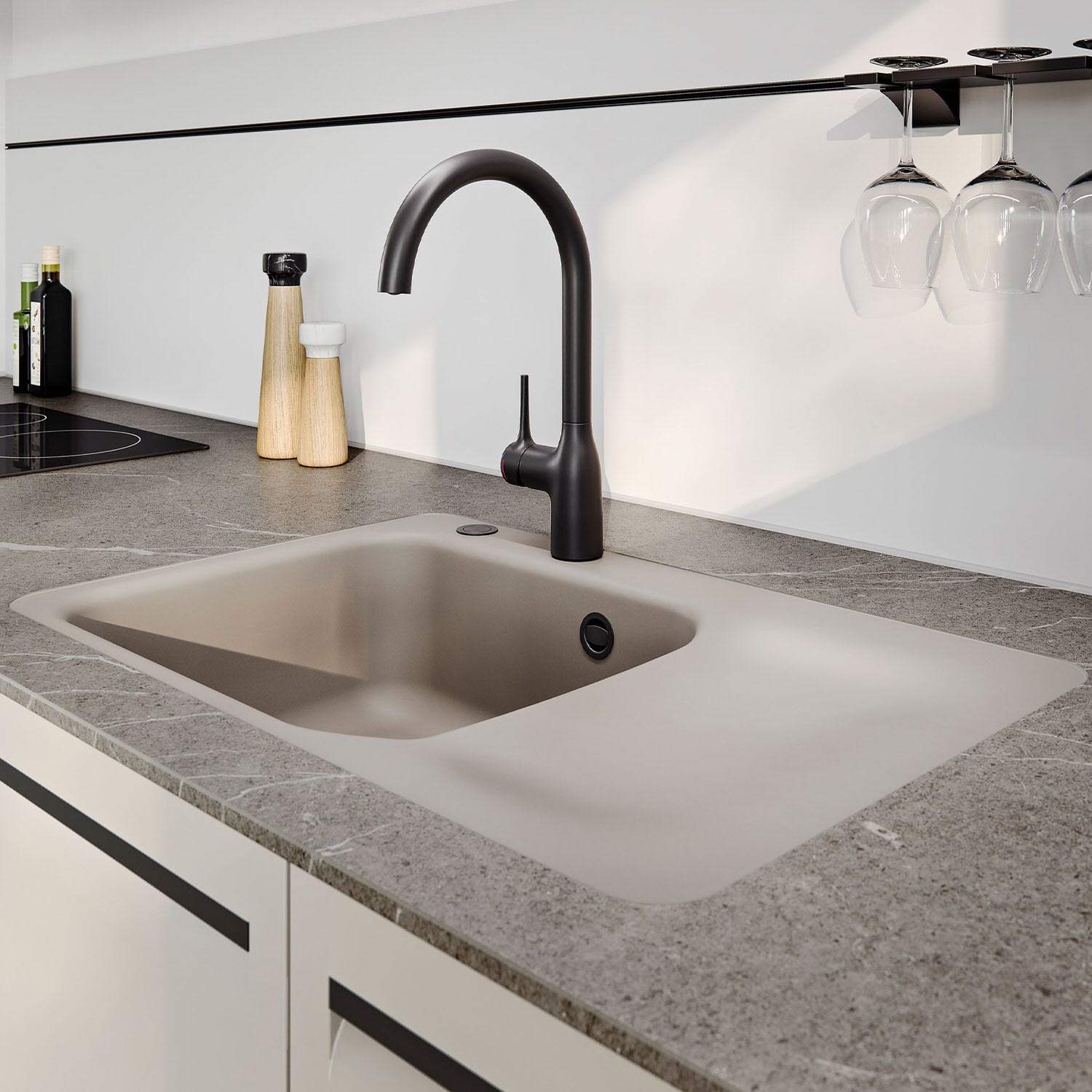 Die Spülbecken von Systemceram beeindrucken mit ihrem organischen Design und der praktischen und leicht zu reinigenden Abtropffläche garantiert jeden Besucher. Zudem bieten sie eine Vielfalt an Farboptionen, die sich in jeden Einrichtungsstil einfügen – sei es Polar für ein modernes Ambiente oder Jasmin für Fans des Boho-Stils.
