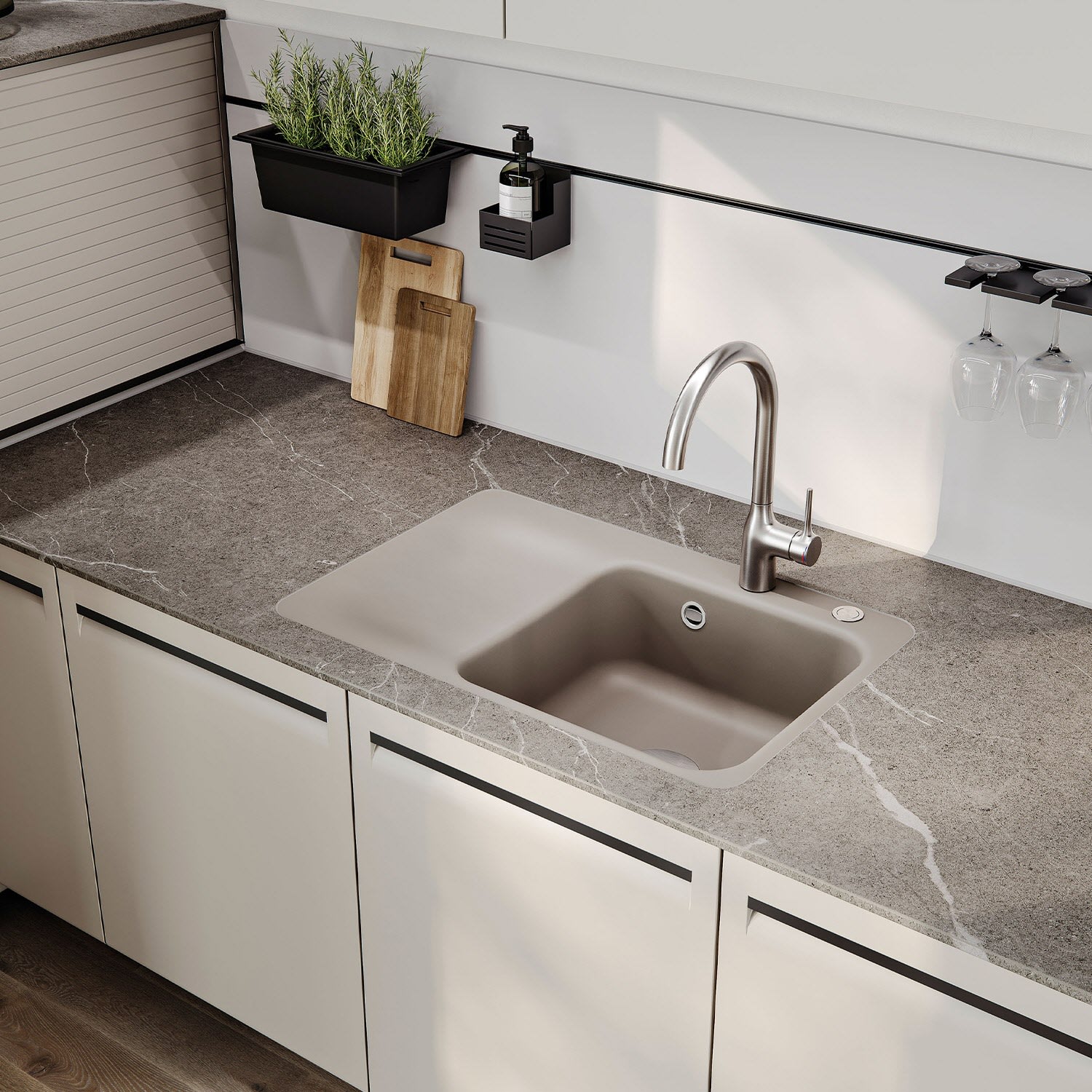 Die Spülbecken von Systemceram beeindrucken mit ihrem organischen Design und der praktischen und leicht zu reinigenden Abtropffläche garantiert jeden Besucher. Zudem bieten sie eine Vielfalt an Farboptionen, die sich in jeden Einrichtungsstil einfügen – sei es Polar für ein modernes Ambiente oder Jasmin für Fans des Boho-Stils.