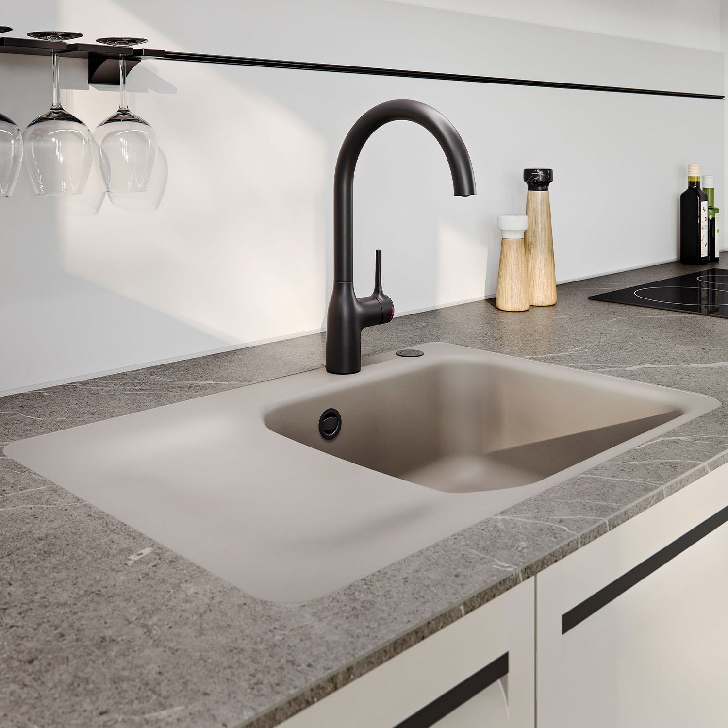 Die Spülbecken von Systemceram beeindrucken mit ihrem organischen Design und der praktischen und leicht zu reinigenden Abtropffläche garantiert jeden Besucher. Zudem bieten sie eine Vielfalt an Farboptionen, die sich in jeden Einrichtungsstil einfügen – sei es Polar für ein modernes Ambiente oder Jasmin für Fans des Boho-Stils.