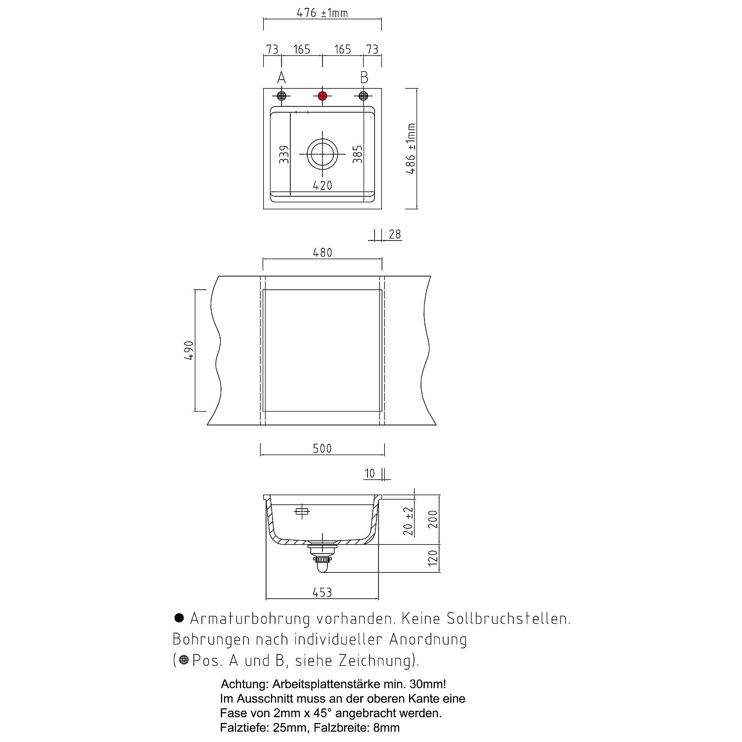 - ohne Armaturbohrung und ohne Sollbruchstellen