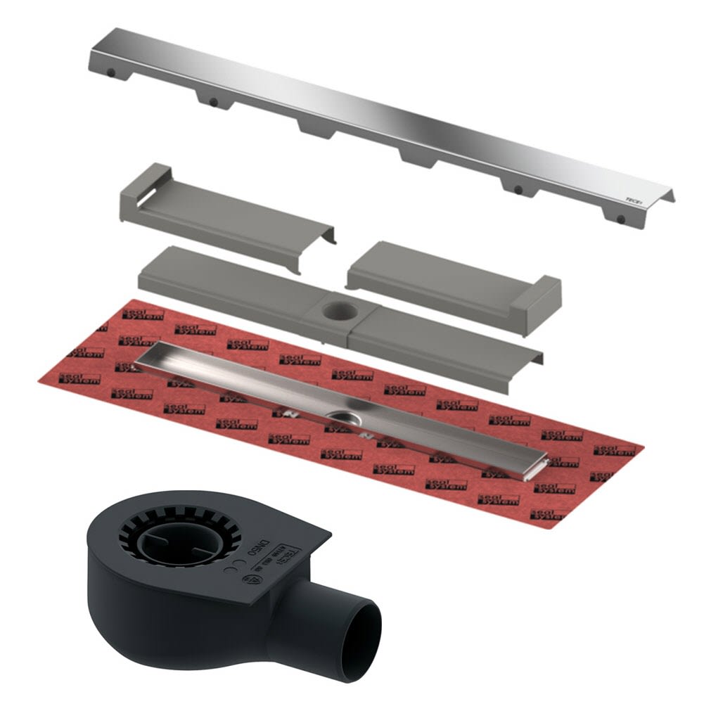 Set aus Duschrinne, Rost und Ablauf flach