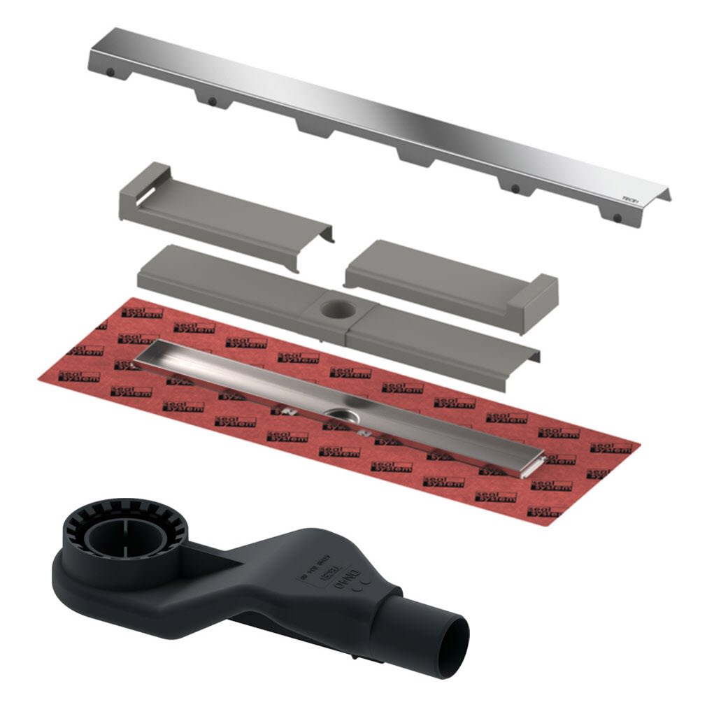 TECE TECEdrainline-Evo Komplettset 90 cm - Duschrinne mit gebürstetem Edelstahlrost und sehr flachem Ablauf