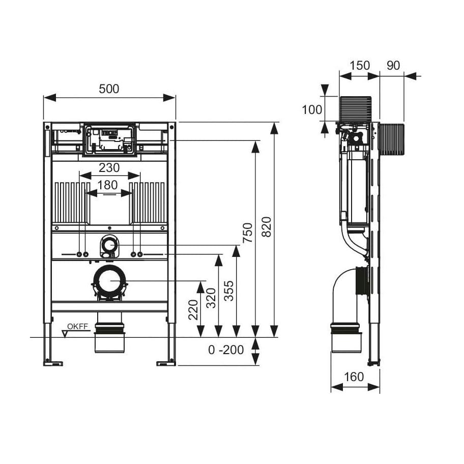 Bei Verwendung von WC-Keramiken mit reduzierter Auflagefläche (= Abstand von Mitte Befestigungsbolzen bis Unterkante Auflagefläche nicht größer als 18 cm) - z. B. V & B Memento, Subway 2.0 - ist der Einbau des Stahlstrebensets 9041029 im unteren Bauraum erforderlich.