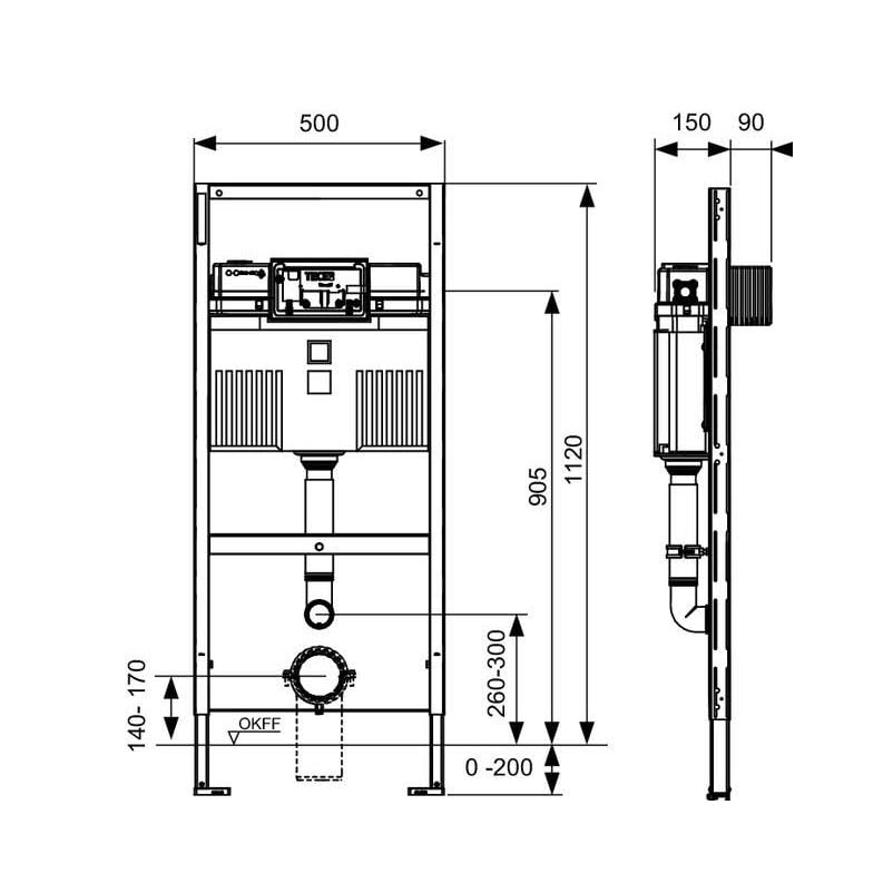 TECE TECEprofil WC-Modul mit Uni-Spülkasten für Kinder-Stand-WC, Bauhöhe 112 cm