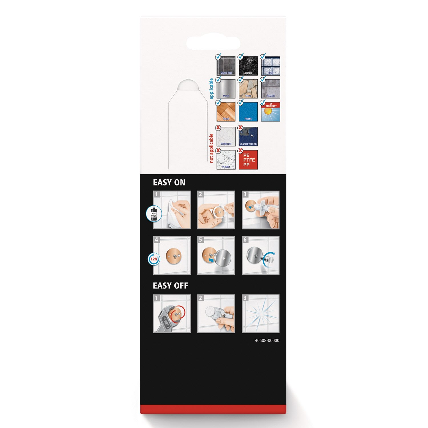 - nicht geeignet für Putz, Tapeten, Wandtextilien und Kunststoffe wie PP, PE und PTFE