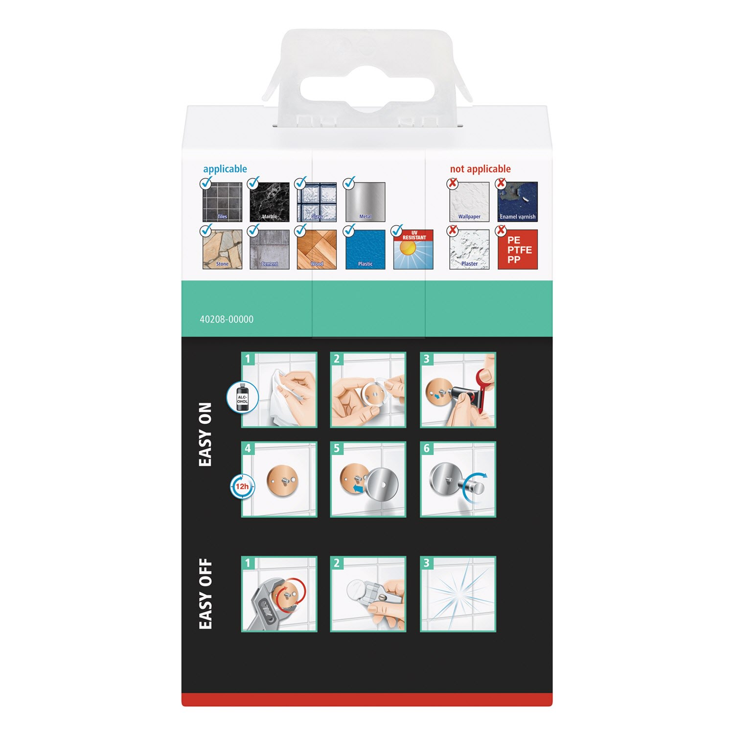 - nicht geeignet für Putz, Tapeten, Wandtextilien und Kunststoffe wie PP, PE und PTFE
