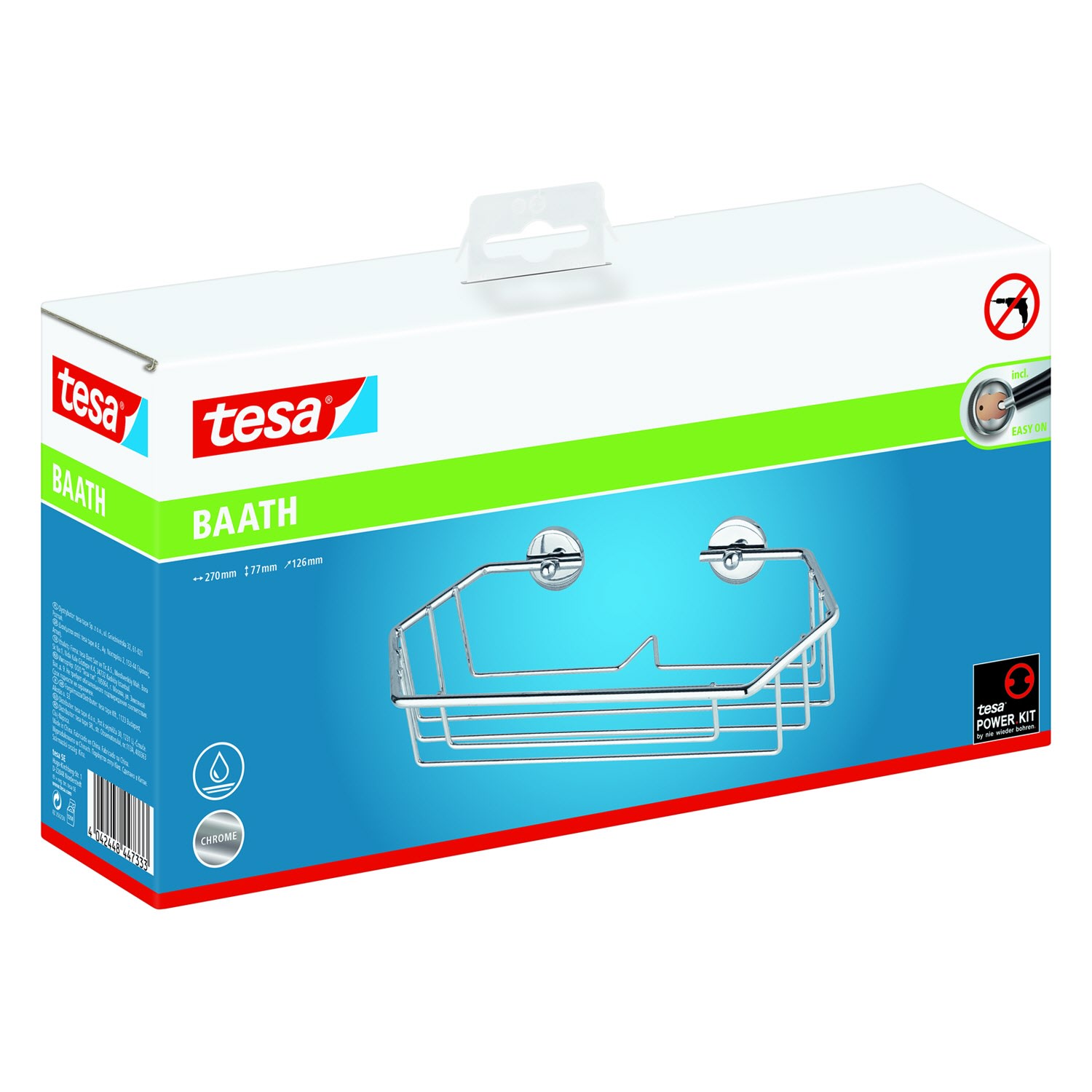 Duschgelhalter & Shampoohalter mit innovativer tesa® Power.Kit Befestigungstechnologie. Edelstahl, verchromt, wasserbeständig, runde Wandplatten, abgerundete Ränder, sechseckig. Sicherer Halt und hohe Belastbarkeit. Wieder ablösbar, keine Schäden am Untergrund, wiederverwendbar mit Befestigungsadapter BK177-2. Einfache und saubere Montage ohne Bohren.