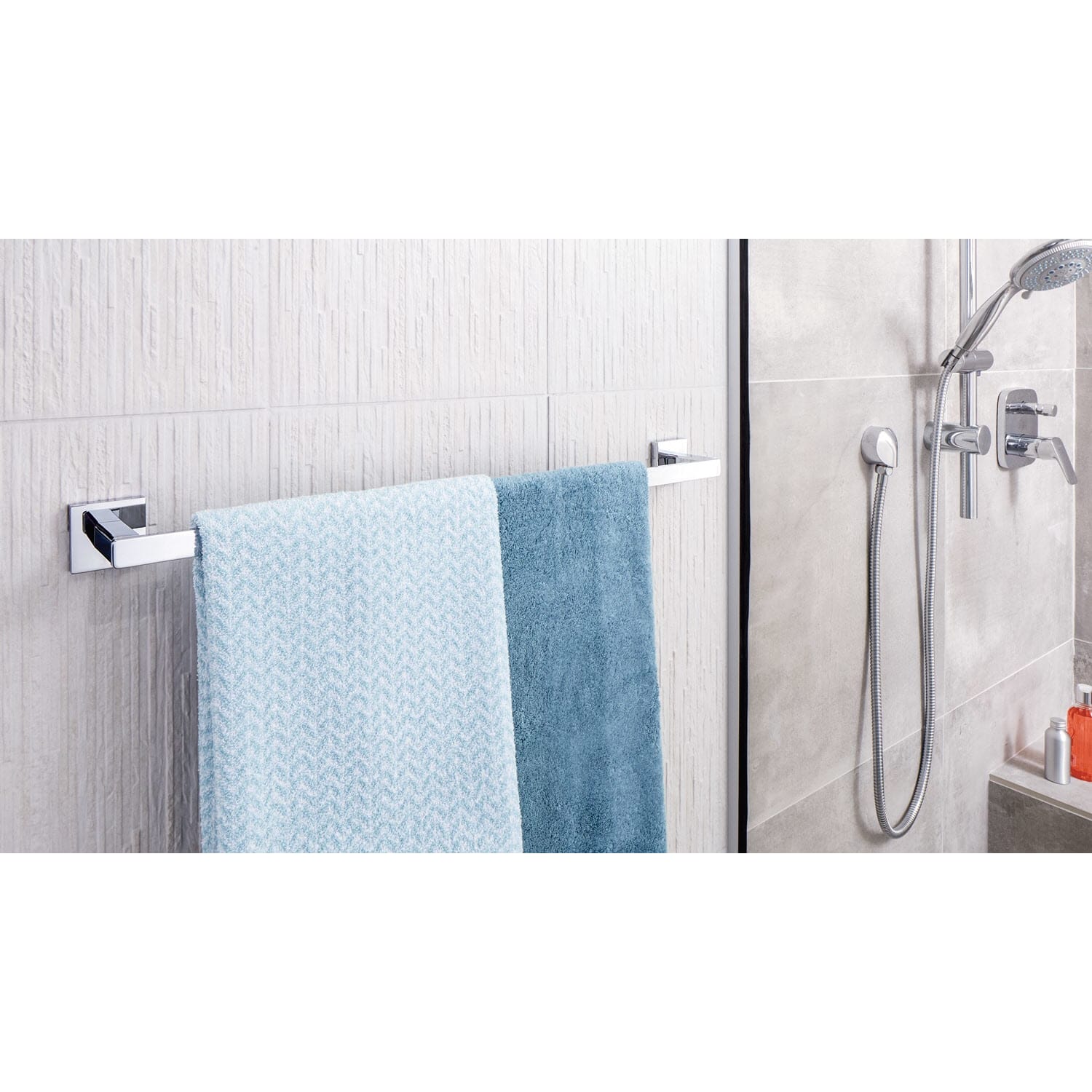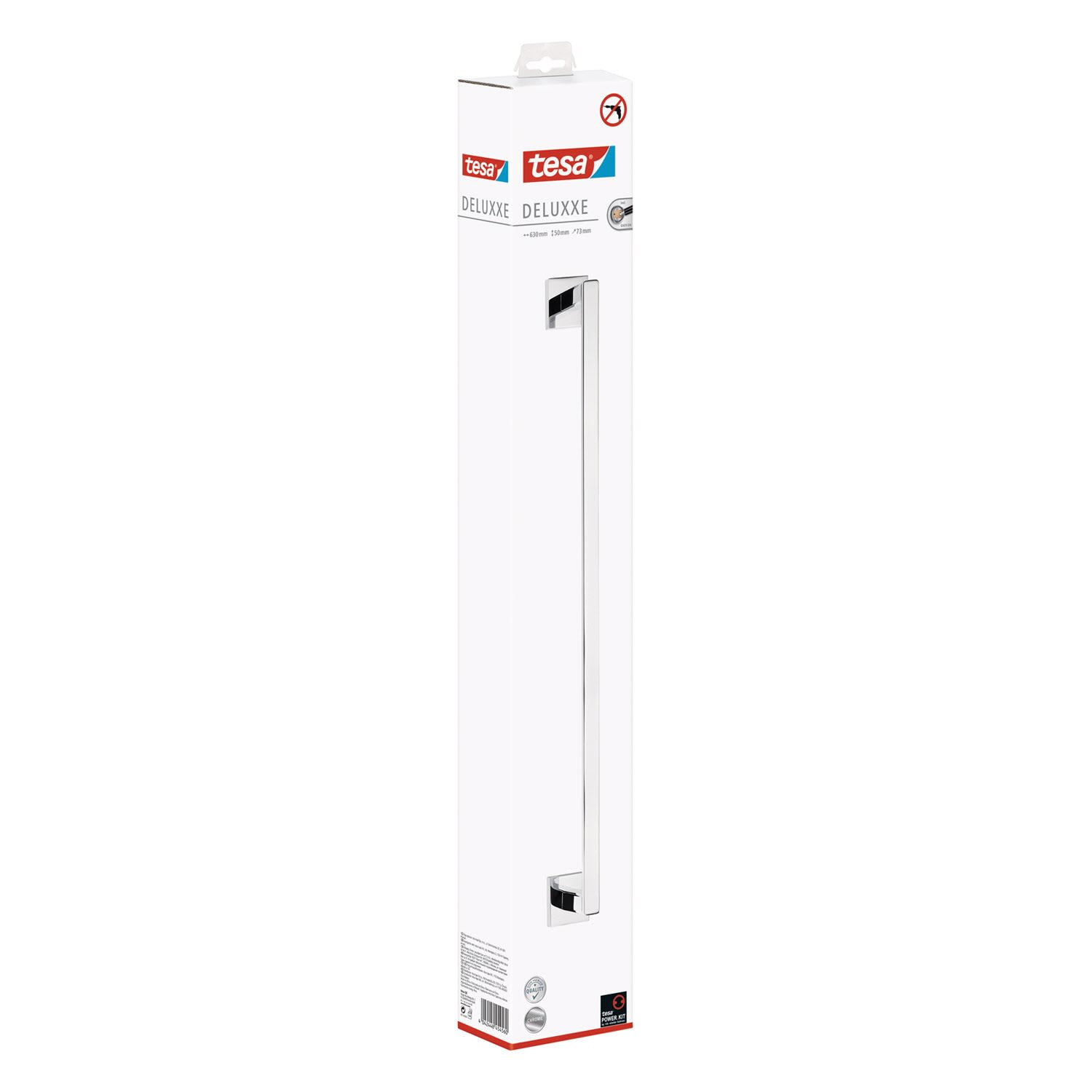 Moderne, geradlinige Form trifft auf edel verchromte Oberfläche: Der Handtuchhalter bringt Ordnung ins Badezimmer - gibt Handtuch, Duschtuch oder Badetuch einen Platz. Beständige Klebetechnologie mit hervorragender Haltekraft - ohne Bohrlöcher: Die Handtuch-Halterung hinterlässt an Wänden im Badezimmer keine Schäden - empfehlenswert für Mietwohnungen, rostfrei. Unkomplizierte, saubere Wandmontage: Mit der tesa Power.Kit Technologie zur einfachen Befestigung an der Wand - ohne Bohrmaschine, ohne handwerkliche Vorkenntnisse, ohne den sonst anfallenden Schmutz.