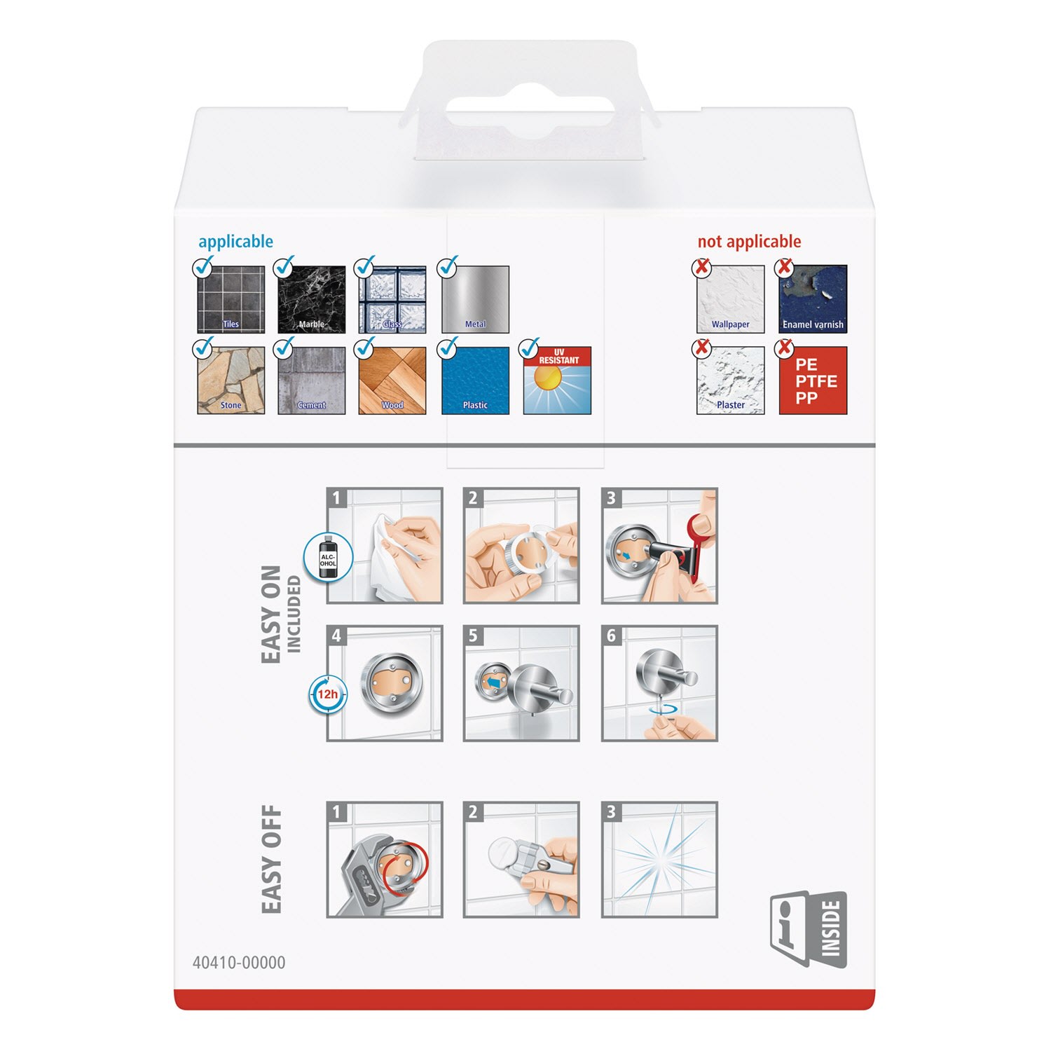 - nicht geeignet für Putz, Tapeten, Wandtextilien und Kunststoffe wie PP, PE und PTFE