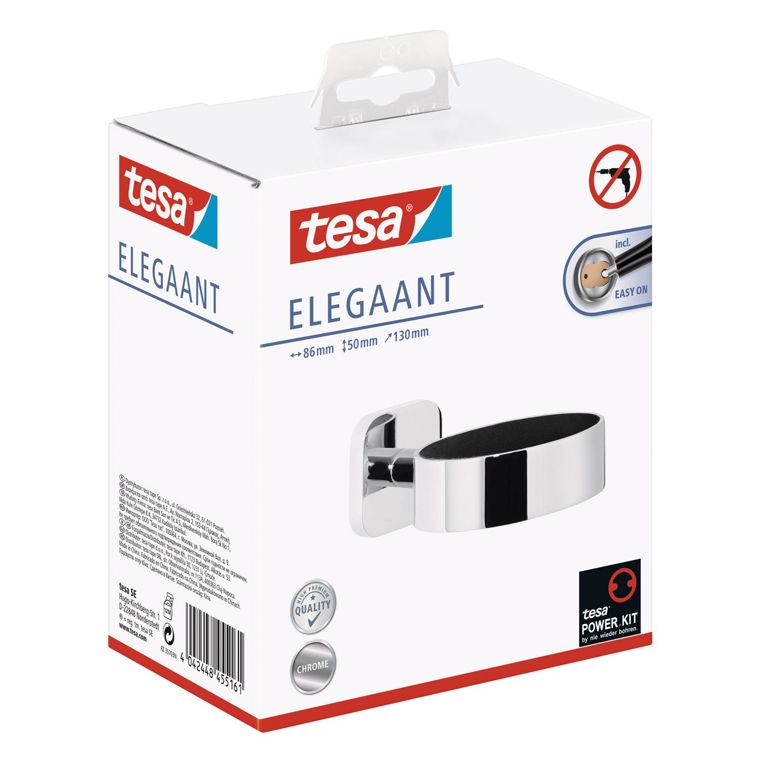 Sicherer Halt ohne Bohren: Die patentierte tesa Power.Kit Befestigungstechnologie ist eine Klebelösung, die dauerhaft für einen zuverlässigen Halt sorgt. Der verchromte Föhnhalter lässt sich einfach und sauber an der Wand anbringen. Elegantes Design: Runde bzw. abgerundete Formen und glänzende Oberflächen bestimmen die Optik der Fönhalterung. So ist sie eine Bereicherung für jedes Badezimmer. Keine Schäden: Da Sie nicht bohren, sondern eine Klebelösung verwenden, vermeiden Sie Schäden an der Wand und ggf. Risse in den Fliesen. Trotz der hohen Klebeleistung können Sie den Föhnhalter jederzeit wieder ablösen.