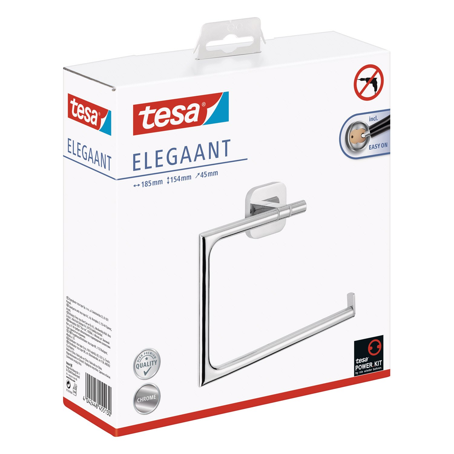Eckige Form, runde Haptik, modernes Erscheinungsbild: Der verchromte Handtuchhalter-Ring präsentiert Handtücher in Bad. Keine Schäden - empfehlenswert für Mietwohnungen, rostfrei. Unkomplizierte, saubere Wandmontage: Mit der tesa Power.Kit Technologie zur einfachen Befestigung an der Wand - ohne Bohrmaschine, ohne handwerkliche Vorkenntnisse, ohne den sonst anfallenden Schmutz