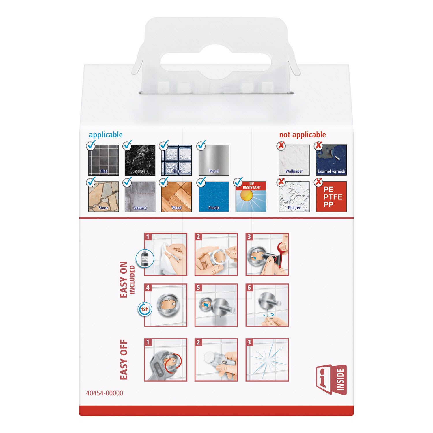 Der Garderobenhaken fürs Bad: Der verchromte Doppel-Klebehaken räumt auf mit Handtüchern, Bademänteln und mit Kleidung - die rechteckige Form wirkt edel und modern - zwei Haken bieten reichlich Platz. Beständige Klebetechnologie mit hervorragender Haltekraft - ohne Bohrlöcher: Der doppelte Badhaken hinterlässt an Wänden im Badezimmer keine Schäden - empfehlenswert für Mietwohnungen, rostfrei. Unkomplizierte, saubere Wandmontage: Mit der tesa Power.Kit Technologie zur einfachen Befestigung an der Wand - ohne Bohrmaschine, ohne handwerkliche Vorkenntnisse, ohne den sonst anfallenden Schmutz.