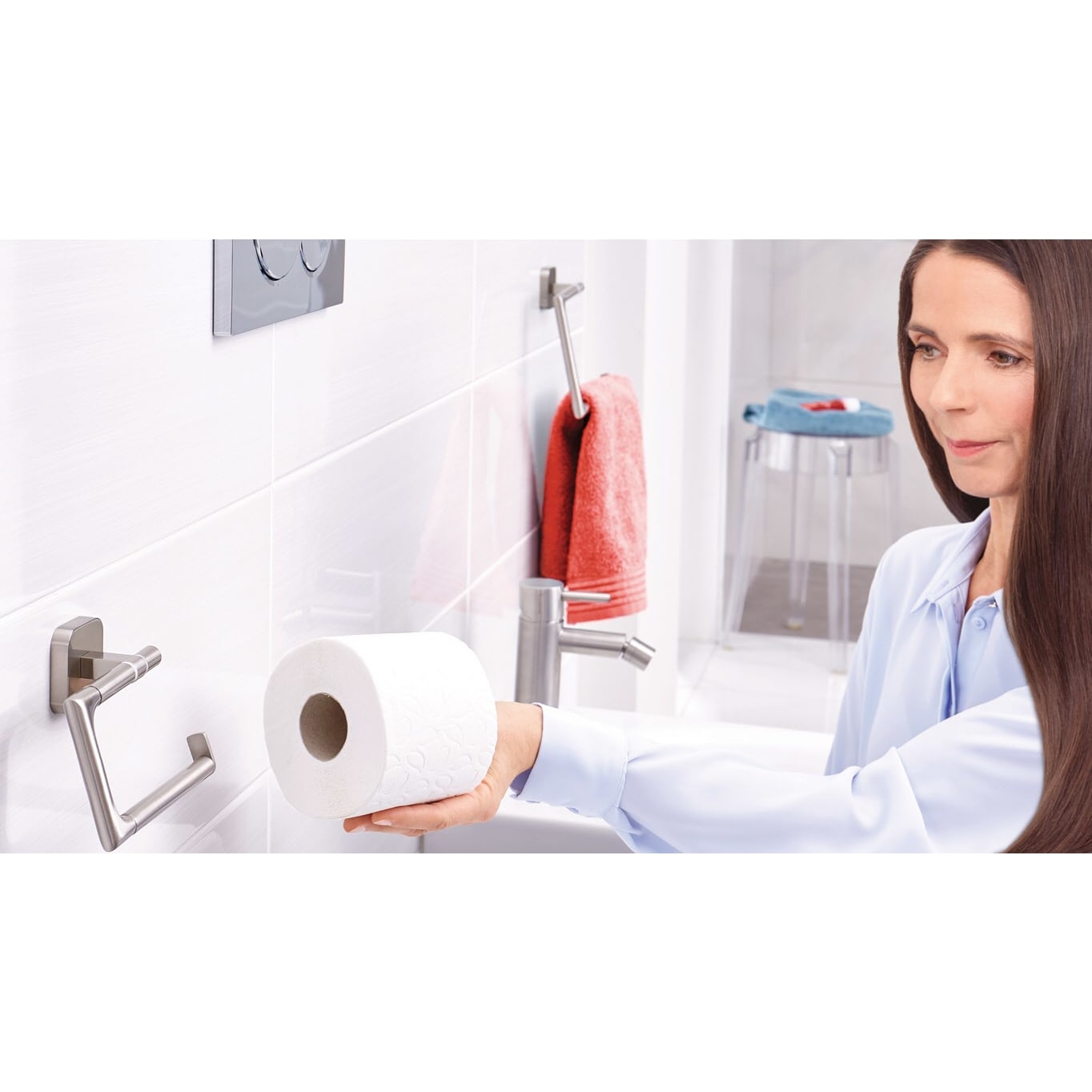 So geschmeidig kann eckige Linienführung sein: Der WC-Rollenhalter mit der glänzenden Oberfläche aus verchromtem Metall vollführt elegant den Spagat zwischen dem Nützlichen und dem Schönen. Beständige Klebetechnologie mit hervorragender Haltekraft - ohne Bohrlöcher: Der Papierrollenhalter hinterlässt an Wänden im Badezimmer keine Schäden - empfehlenswert für Mietwohnungen, rostfrei. Unkomplizierte, saubere Wandmontage: Mit der tesa Power.Kit Technologie zur einfachen Befestigung an der Wand - ohne Bohrmaschine, ohne handwerkliche Vorkenntnisse, ohne den sonst anfallenden Schmutz