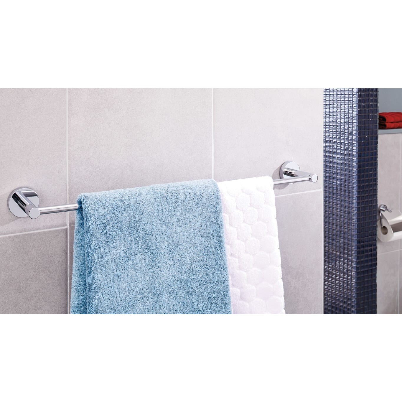 Moderne, runde Form trifft auf edel verchromte Oberfläche: Der Handtuchhalter bringt Ordnung ins Badezimmer - gibt Handtuch, Duschtuch oder Badetuch einen Platz. Beständige Klebetechnologie mit hervorragender Haltekraft - ohne Bohrlöcher: Die Handtuch-Halterung hinterlässt an Wänden im Badezimmer keine Schäden - empfehlenswert für Mietwohnungen, rostfrei. Unkomplizierte, saubere Wandmontage: Mit der tesa Power.Kit Technologie zur einfachen Befestigung an der Wand - ohne Bohrmaschine, ohne handwerkliche Vorkenntnisse, ohne den sonst anfallenden Schmutz