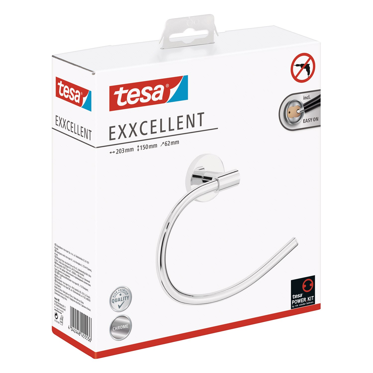 Runde Form, runde Haptik, modernes Erscheinungsbild: Der verchromte Handtuchhalter-Ring präsentiert Handtücher in Bad. Keine Schäden - empfehlenswert für Mietwohnungen, rostfrei. Unkomplizierte, saubere Wandmontage: Mit der tesa Power.Kit Technologie zur einfachen Befestigung an der Wand - ohne Bohrmaschine, ohne handwerkliche Vorkenntnisse, ohne den sonst anfallenden Schmutz
