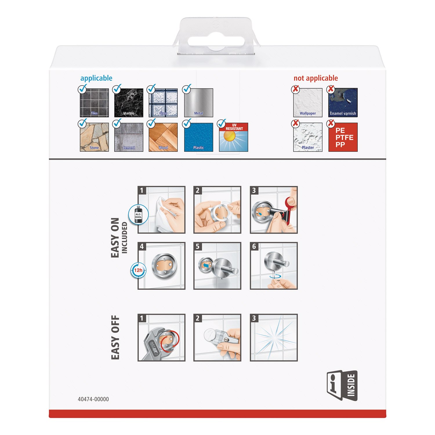 - nicht geeignet für Putz, Tapeten, Wandtextilien und Kunststoffe wie PP, PE und PTFE