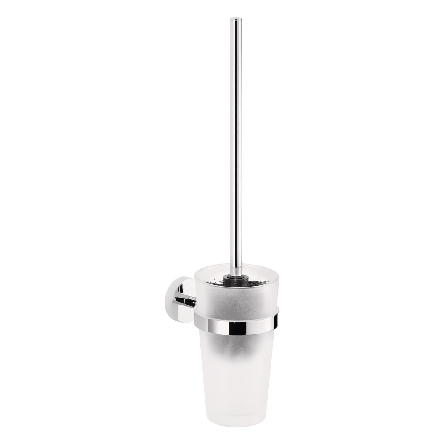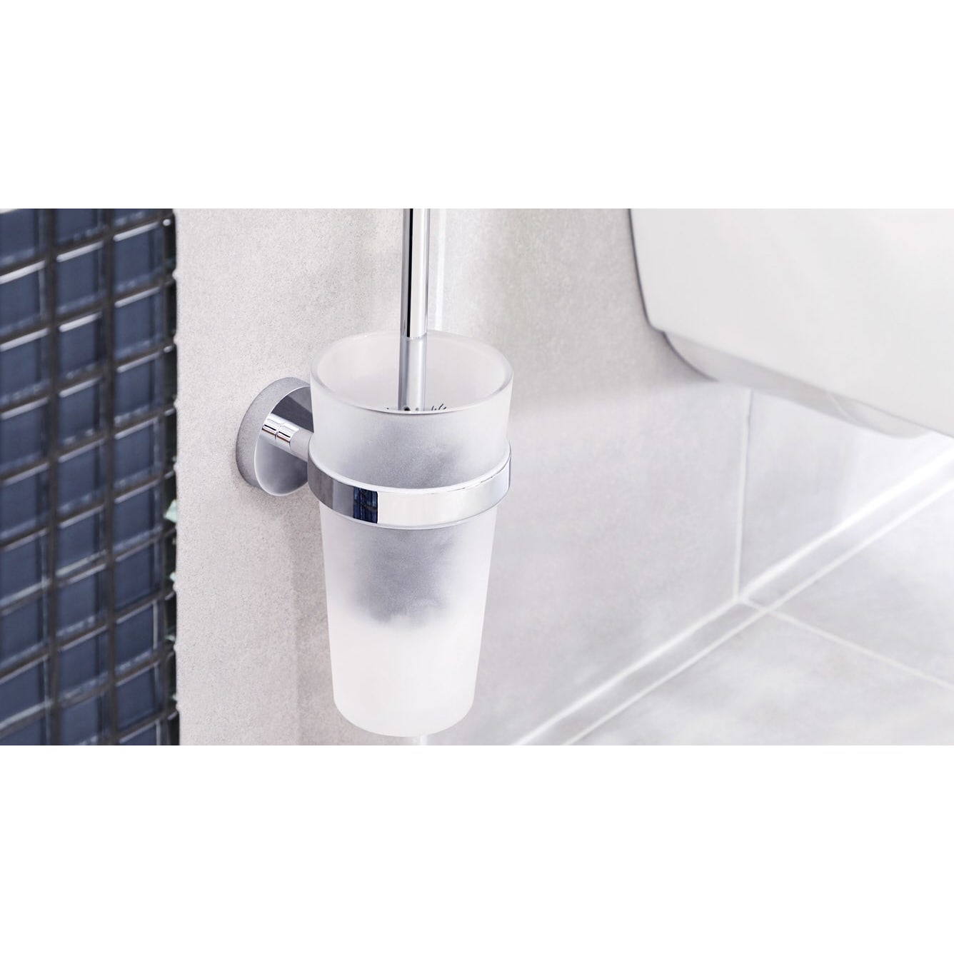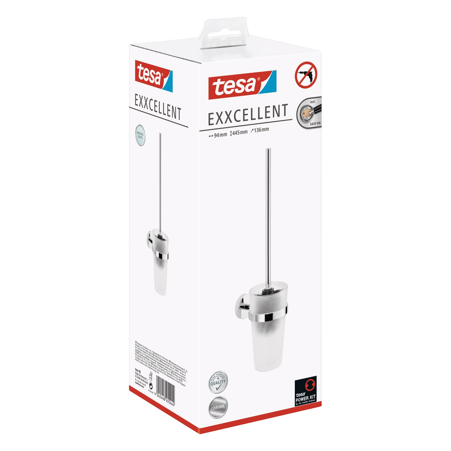 Satiniertes Glas und verchromtes Metall als harmonisches Duo: WC-Bürstengarnitur mit Wandhalterung, Behälter und WC-Bürste - zeitgemäß runde Form, die im Bad. Keine Schäden - empfehlenswert für Mietwohnungen, rostfrei. Unkomplizierte, saubere Wandmontage: Mit der tesa Power.Kit Technologie zur einfachen Befestigung an der Wand - ohne Bohrmaschine, ohne handwerkliche Vorkenntnisse, ohne den sonst anfallenden Schmutz