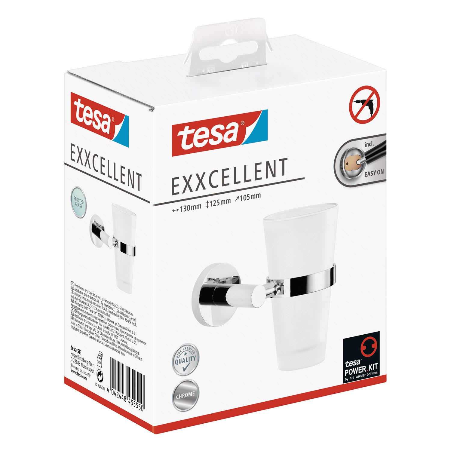 Modernes, geometrisch inspiriertes Design fürs Bad: Ein edles Accessoire zum Zähneputzen - der rund geformte Zahnputzbecher aus Milchglas wird von einem verchromten Zahnbecherhalter umfasst. Beständige Klebetechnologie mit hervorragender Haltekraft - ohne Bohrlöcher: Der Halter für den Mundbecher hinterlässt an Wänden im Badezimmer keine Schäden - empfehlenswert für Mietwohnungen, rostfrei. Unkomplizierte, saubere Wandmontage: Mit der tesa Power.Kit Technologie zur einfachen Befestigung an der Wand - ohne Bohrmaschine, ohne handwerkliche Vorkenntnisse, ohne den sonst anfallenden Schmutz