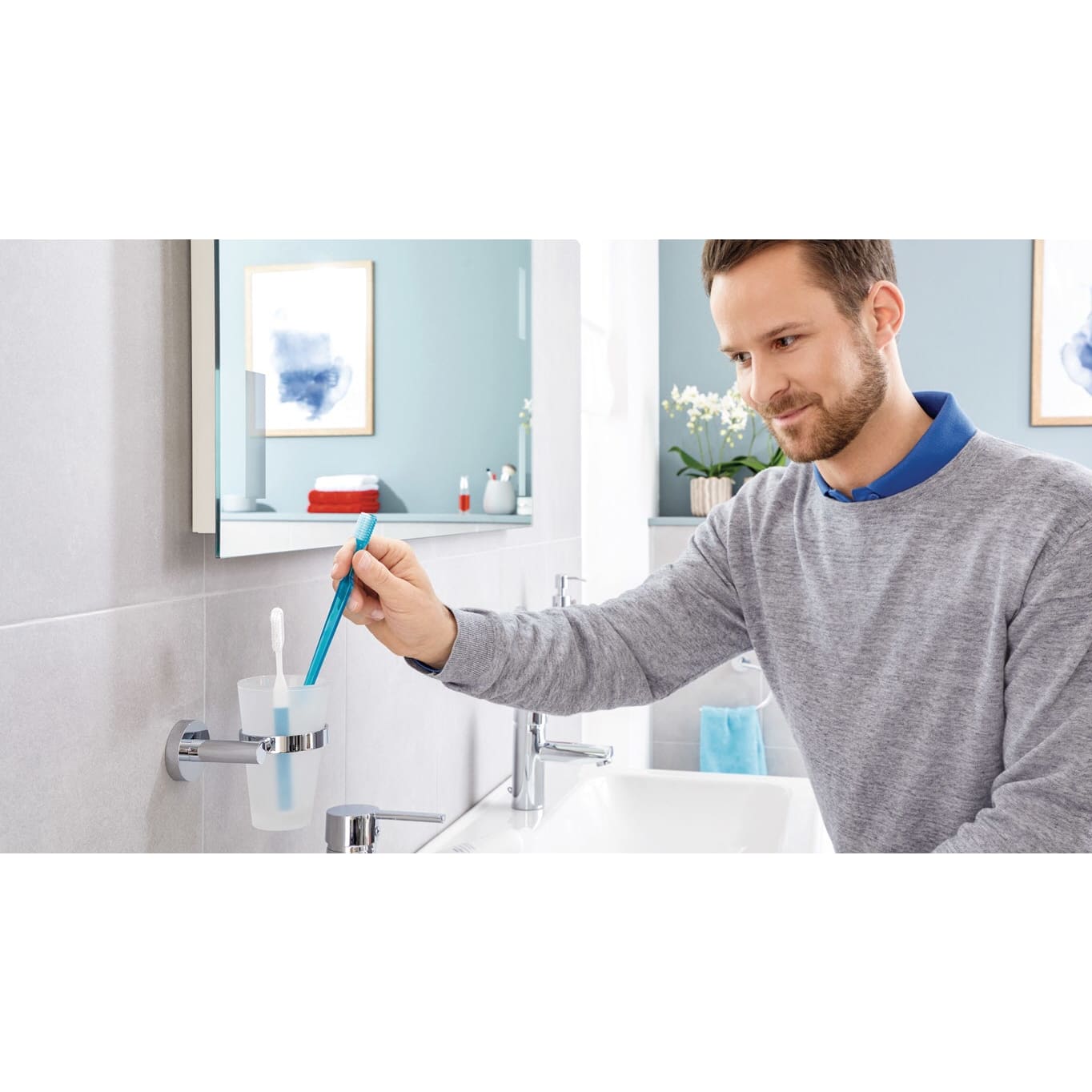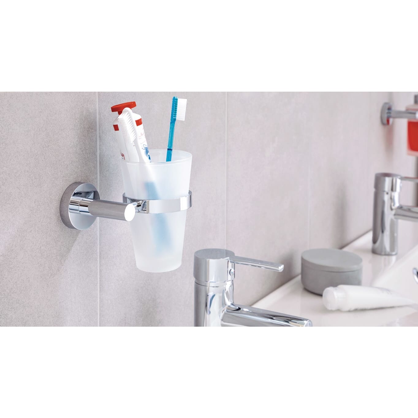 tesa EXXCELLENT Zahnputzbecher mit Wandhalterung