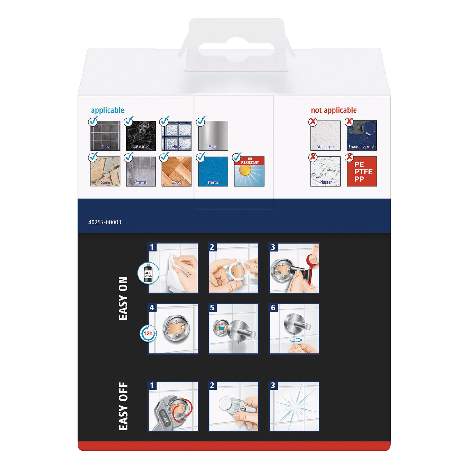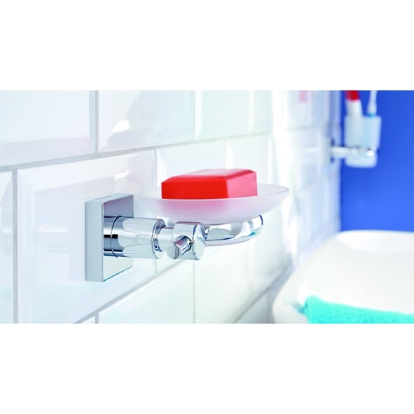 Verchromter Edelstahl ergänzt durch satiniertes Glas: Ideal als Ablage für Handseife, festes Shampoo oder festes Duschgel - und ein elegantes Accessoire. Leistungsstarke, beständige Klebetechnologie, die keine Bohrlöcher hinterlässt: Der Seifenhalter trägt Belastungen bis zu 6 kg - die Wände im Badezimmer bleiben dabei unbeschädigt. Unkomplizierte, saubere Wandmontage: Mit der tesa Power.Kit Technologie zur einfachen Befestigung an der Wand - ohne Bohrmaschine, ohne handwerkliche Vorkenntnisse, ohne den sonst anfallenden Schmutz
