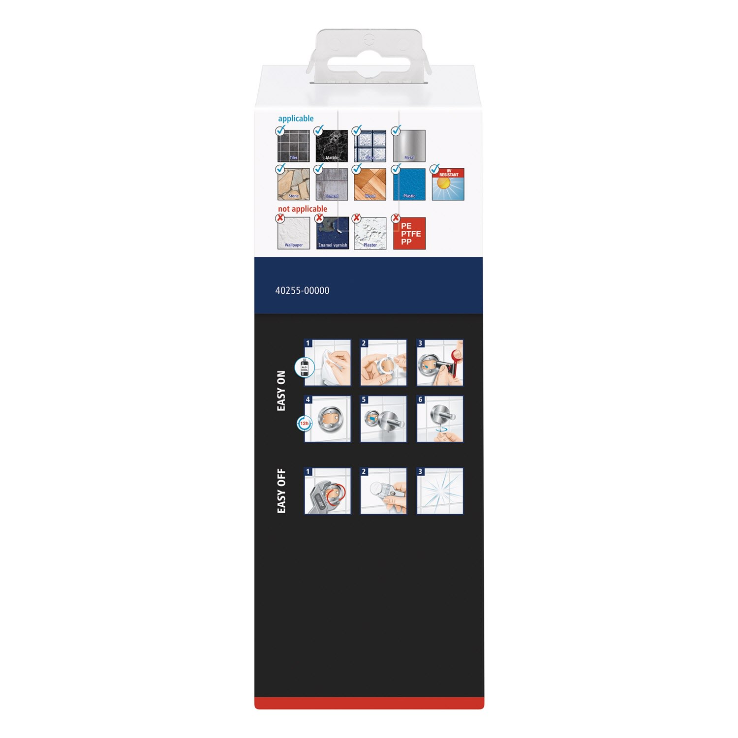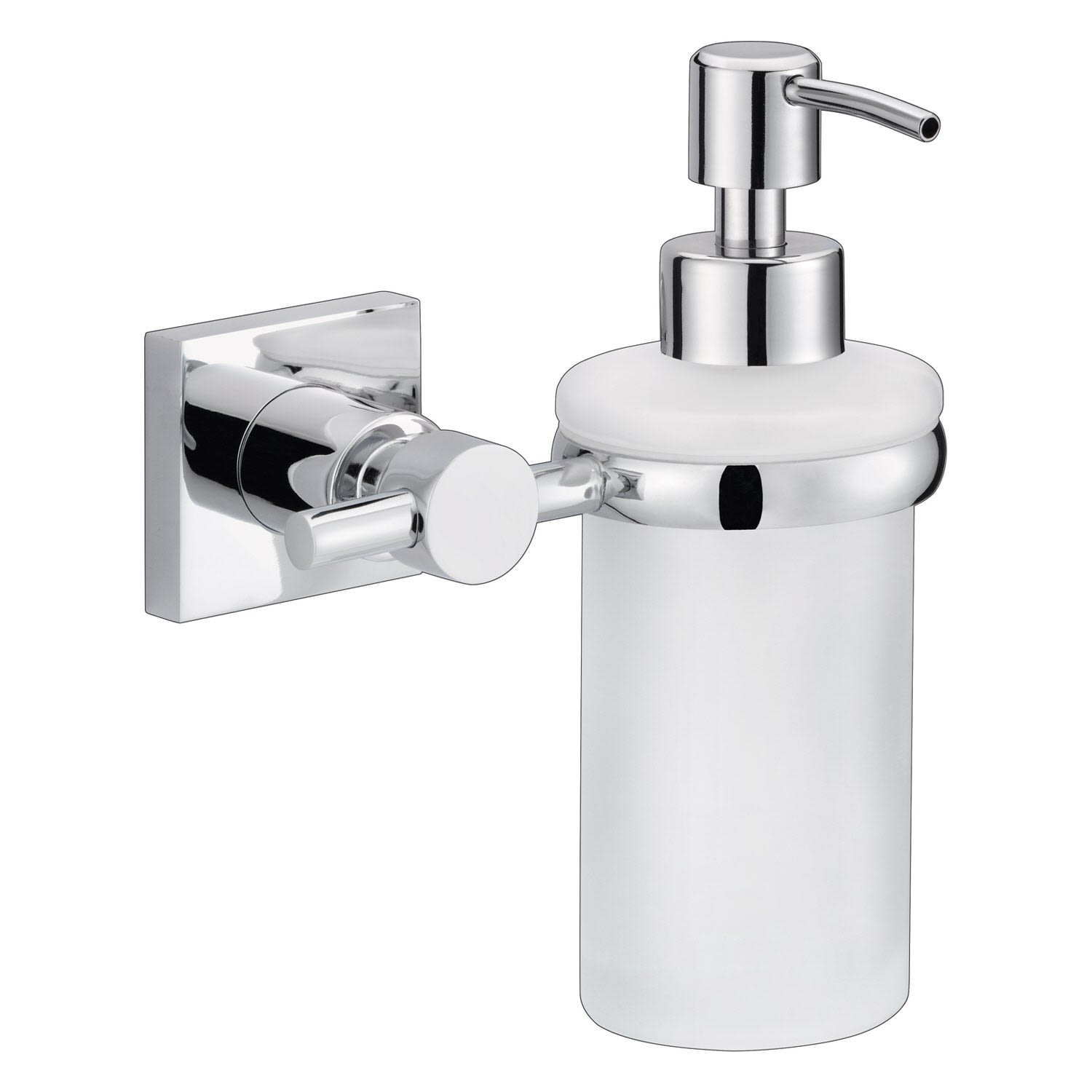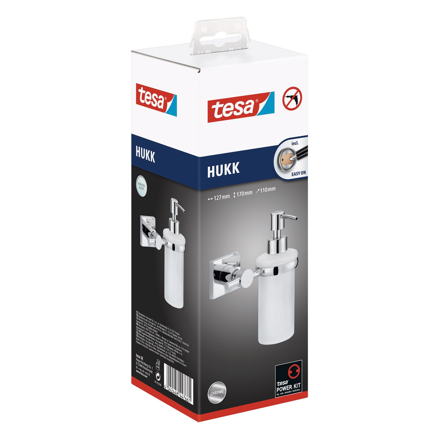 Verchromter Edelstahl und satiniertes Glas in harmonischem Zusammenspiel: Spender für Flüssigseife mit Wandhalterung - ein elementarer Gegenstand wird zu einem Design-Element in Bad. Keine Bohrlöcher hinterlässt: Die Halterung für den Pumpspender trägt Belastungen bis zu 6 kg - die Wände im Badezimmer bleiben dabei unbeschädigt. Unkomplizierte, saubere Wandmontage: Mit der tesa Power.Kit Technologie zur einfachen Befestigung an der Wand - ohne Bohrmaschine, ohne handwerkliche Vorkenntnisse, ohne den sonst anfallenden Schmutz