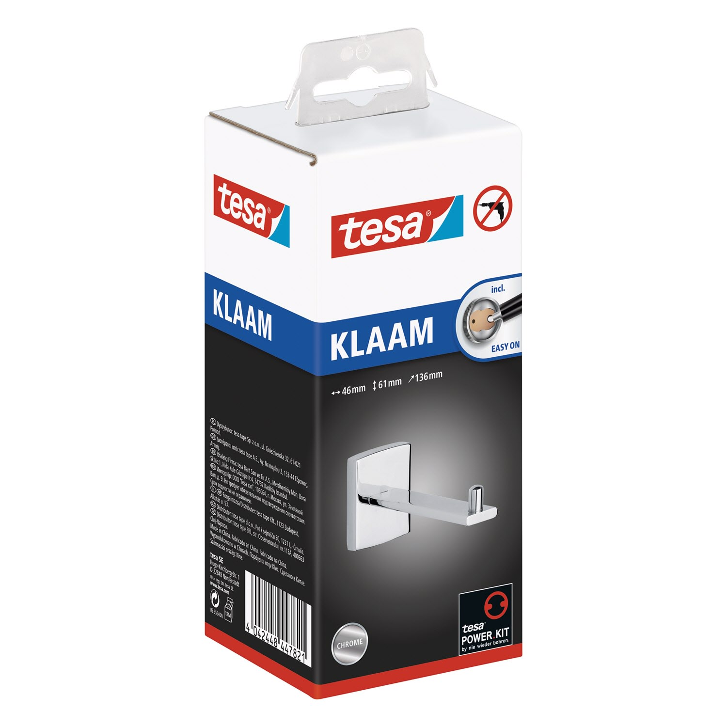 Der Halter für die Ersatzrolle Toilettenpapier demonstriert, wie schön auch ein funktionales Bad-Accessoire sein kann. Mit der tesa Power.Kit Technologie zur einfachen Befestigung an der Wand - ohne Bohrmaschine, ohne handwerkliche Vorkenntnisse, ohne den sonst anfallenden Schmutz.