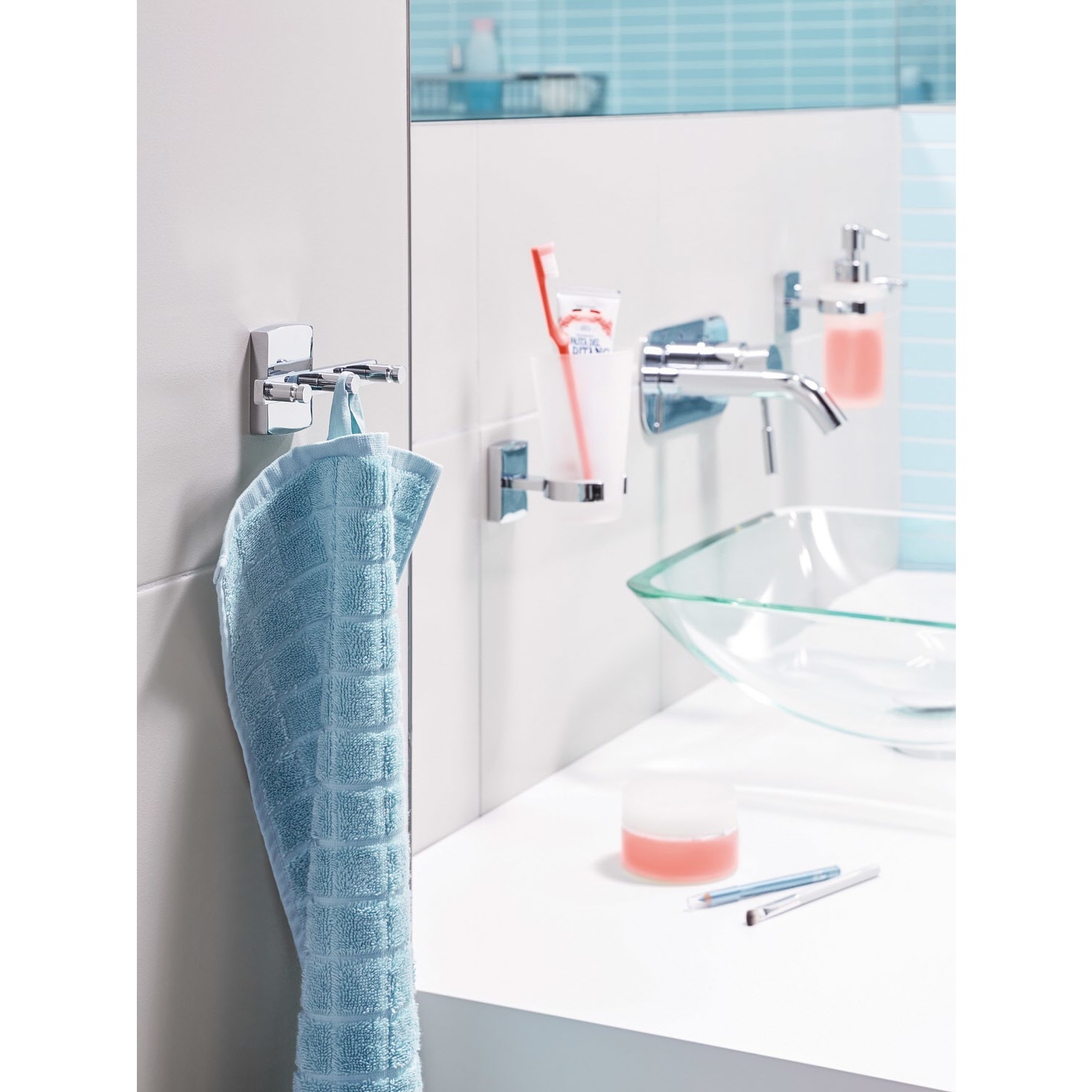 Sicherer Halt ohne Bohren: Die patentierte tesa Power.Kit Befestigungstechnologie ist eine Klebelösung, die dauerhaft für einen zuverlässigen Halt sorgt. Die Halteleistung beträgt bis zu 6 kg. Die Hakenleiste lässt sich einfach und sauber an der Wand befestigen. Elegantes Design: Ansprechende Formen und glänzende Oberflächen erzeugen ein elegantes Design, für jedes Bad.