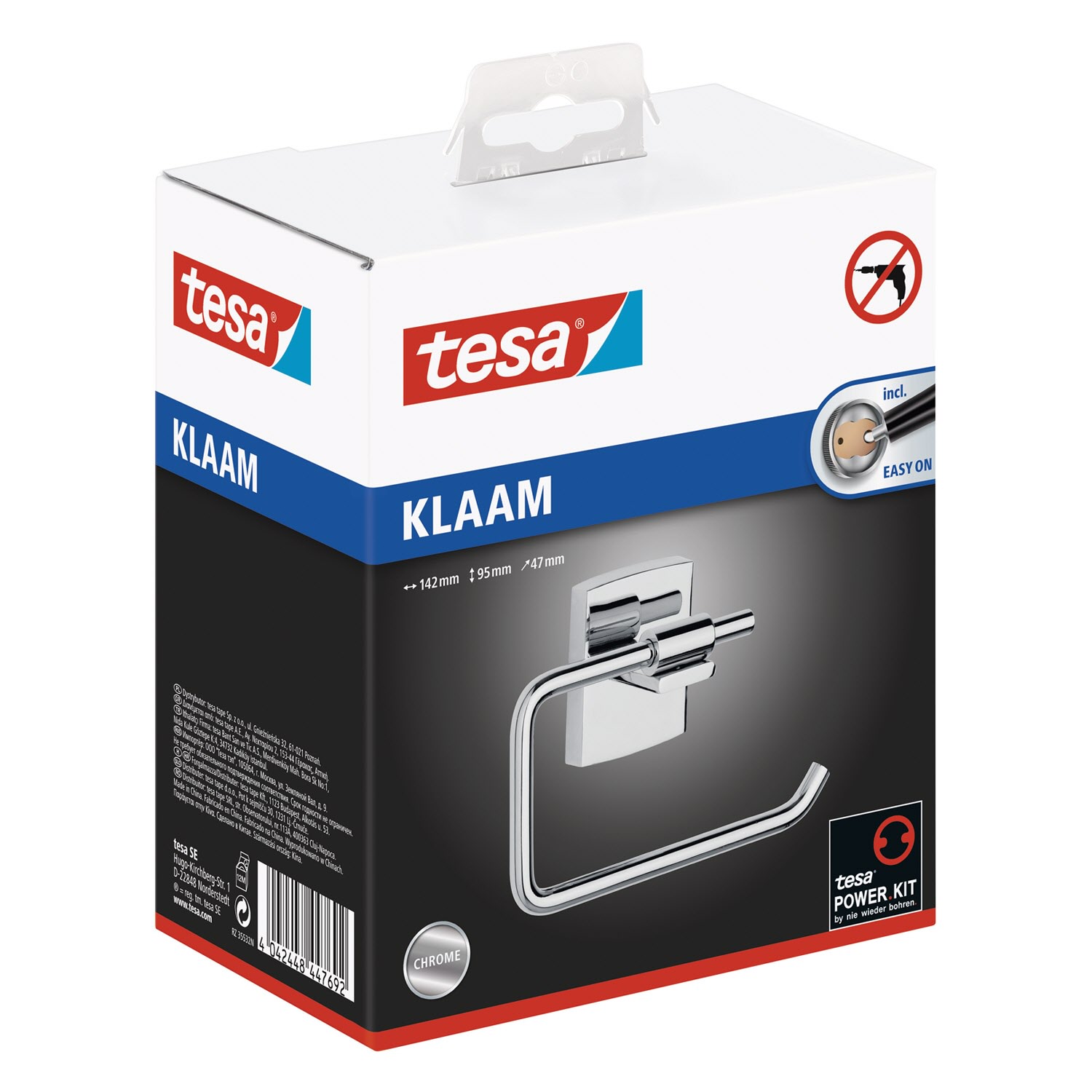 Klassisches Design für Bad. Keine Bohrlöcher hinterlässt: Der Papierrollenhalter trägt Belastungen bis zu 6 kg - die Wände im Badezimmer bleiben dabei unbeschädigt. Unkomplizierte, saubere Wandmontage: Mit der tesa Power.Kit Technologie zur einfachen Befestigung an der Wand - ohne Bohrmaschine, ohne handwerkliche Vorkenntnisse, ohne den sonst anfallenden Schmutz