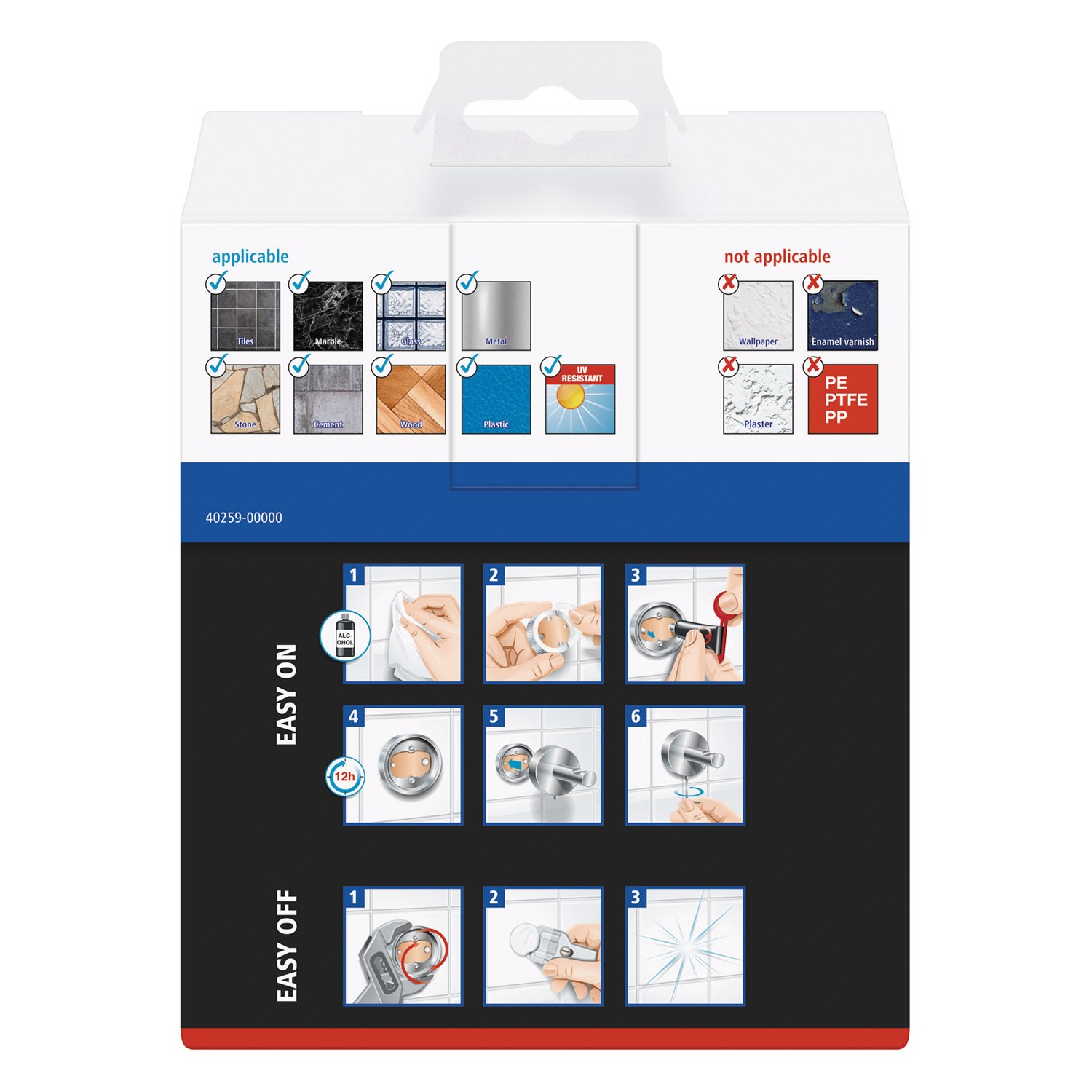 - nicht geeignet für Putz, Tapeten, Wandtextilien und Kunststoffe wie PP, PE und PTFE