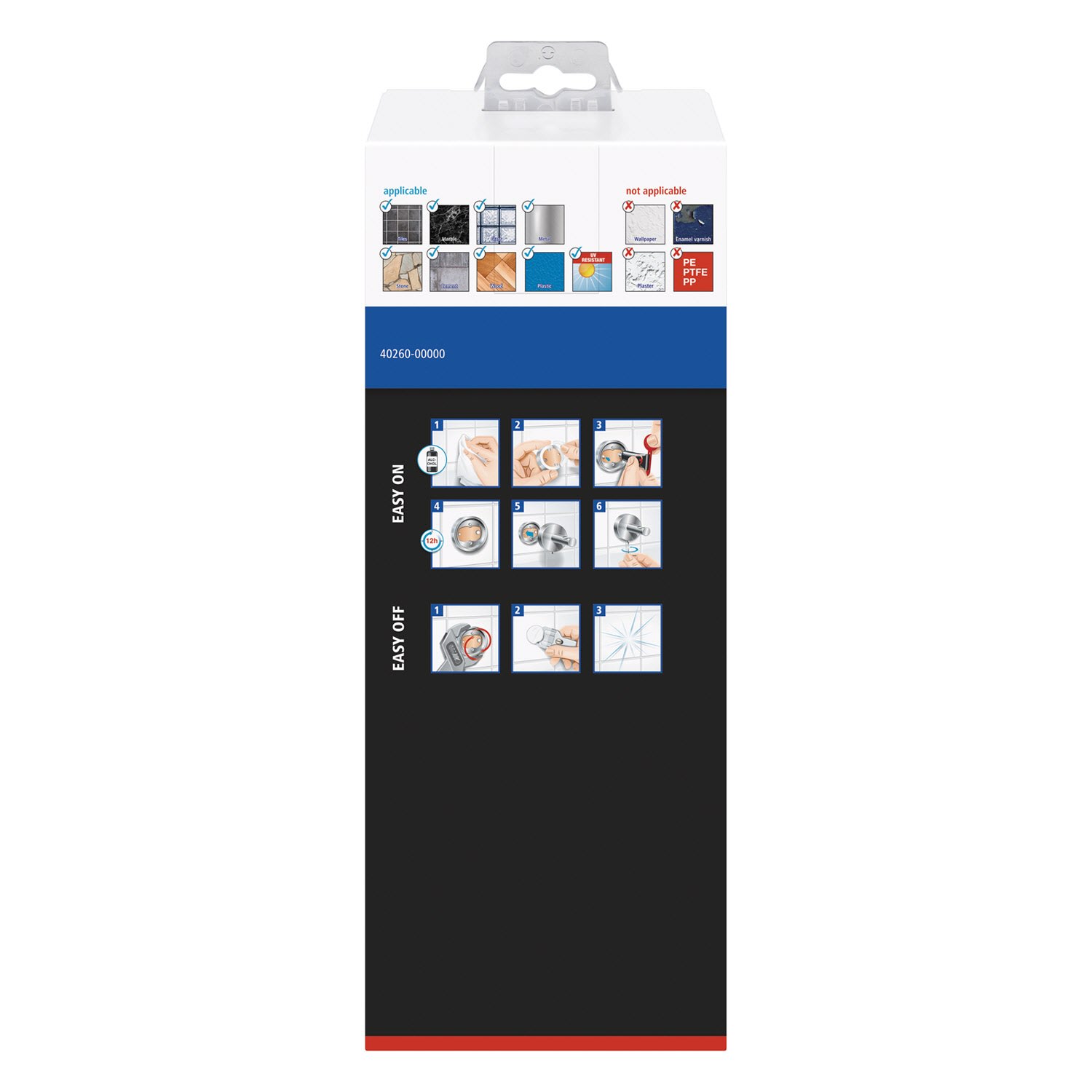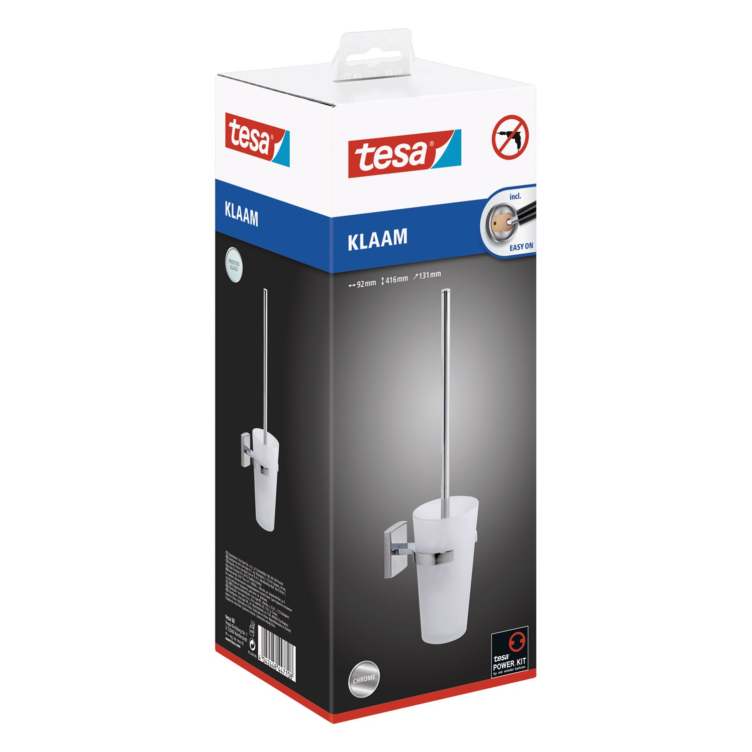 Satiniertes Glas und verchromter Edelstahl harmonisch kombiniert: WC-Bürstengarnitur mit Wandhalterung, Behälter und WC-Bürste - ein funktionales Werkzeug wird zum stilvollen Accessoire. Leistungsstarke, beständige Klebetechnologie, die keine Bohrlöcher hinterlässt: Der Toilettenbürstenhalter ist bis zu 6 kg belastbar - die Wände im Badezimmer bleiben dabei unbeschädigt. Unkomplizierte, saubere Wandmontage: Mit der tesa Power.Kit Technologie zur einfachen Befestigung an der Wand - ohne Bohrmaschine, ohne handwerkliche Vorkenntnisse, ohne den sonst anfallenden Schmutz
