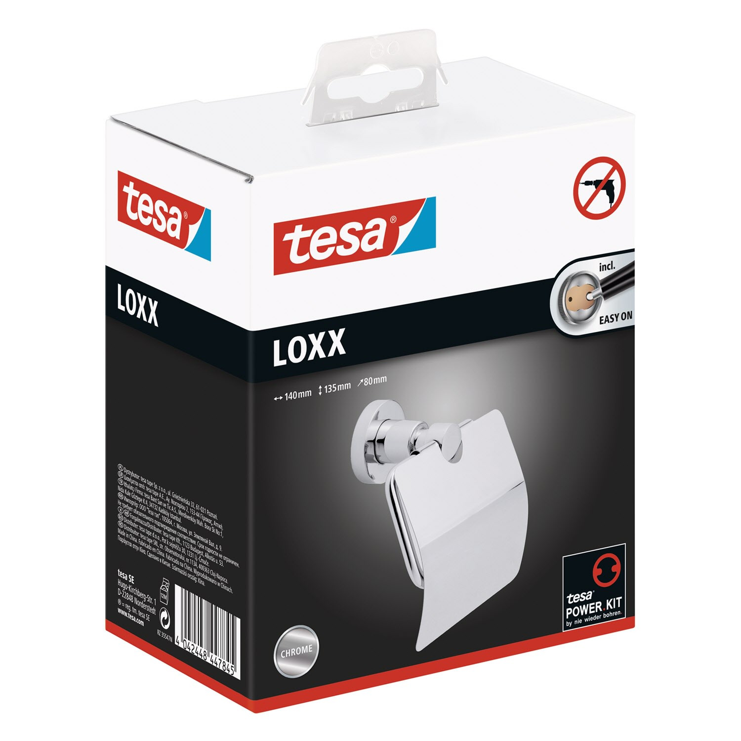Der WC-Rollenhalter mit Deckel - ein edler Blickfang. Leistungsstarke, beständige Klebetechnologie, die keine Bohrlöcher hinterlässt: Der Papierrollenhalter trägt Belastungen bis zu 6 kg - die Wände im Badezimmer bleiben dabei unbeschädigt. Unkomplizierte, saubere Wandmontage: Mit der tesa Power.Kit Technologie zur einfachen Befestigung an der Wand - ohne Bohrmaschine, ohne handwerkliche Vorkenntnisse, ohne den sonst anfallenden Schmutz.