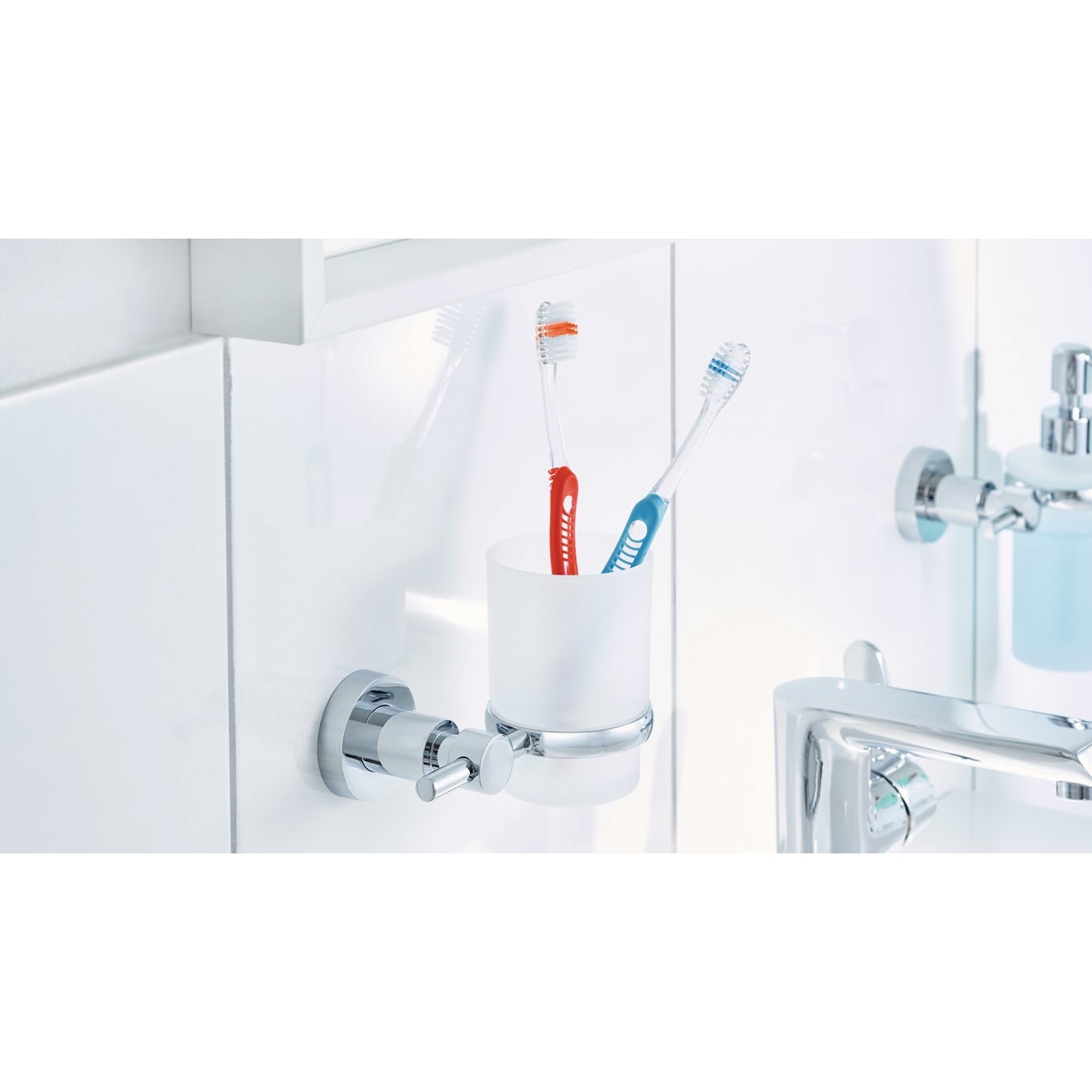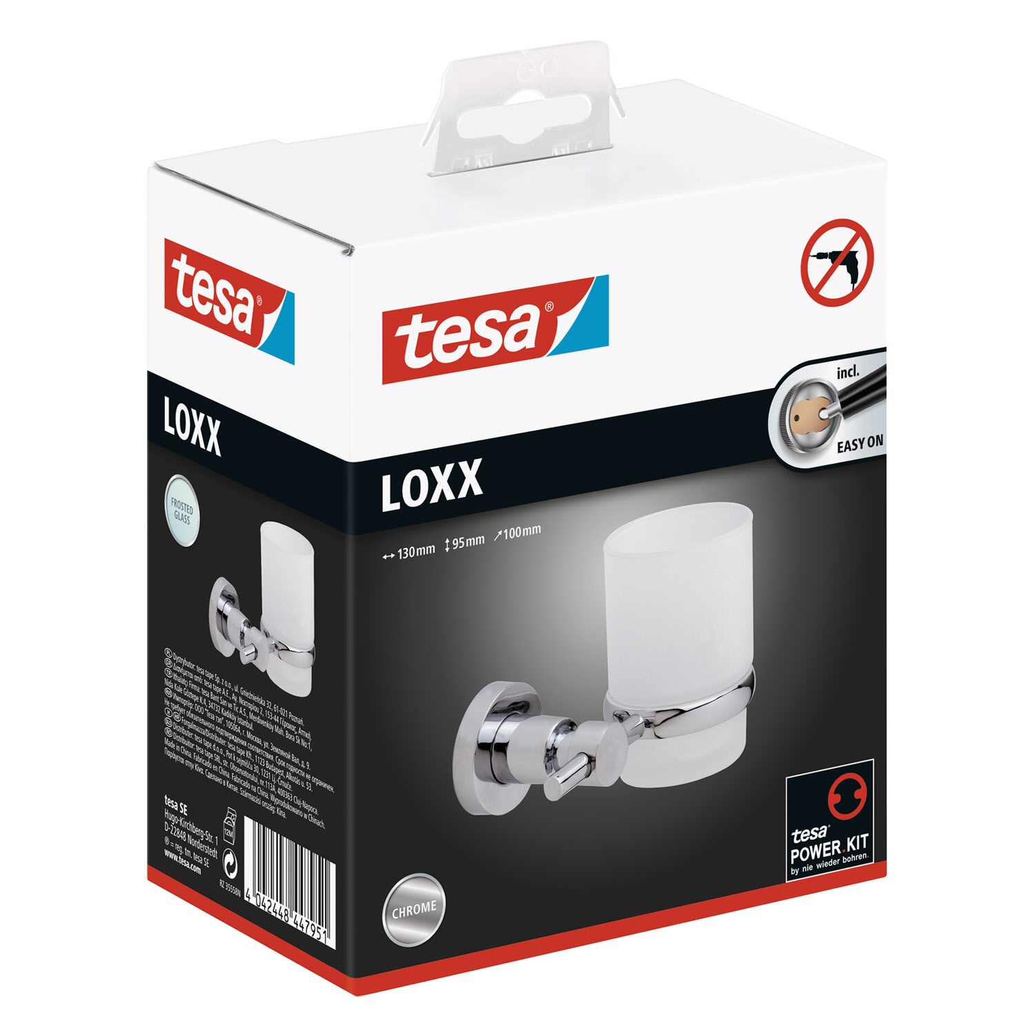 Ein attraktives Duo fürs Bad: Edler Zahnputzbecher aus satiniertem Glas, gehalten von einem edlen, verchromten Zahnbecherhalter - ein praktisches Bad-Accessoire, das einen eleganten Akzent. Leistungsstarke, beständige Klebetechnologie, die keine Bohrlöcher hinterlässt: Der Halter für den Mundbecher trägt Belastungen bis zu 6 kg - die Wände im Badezimmer bleiben dabei unbeschädigt. Unkomplizierte, saubere Wandmontage: Mit der tesa Power.Kit Technologie zur einfachen Befestigung an der Wand - ohne Bohrmaschine, ohne handwerkliche Vorkenntnisse, ohne den sonst anfallenden Schmutz.