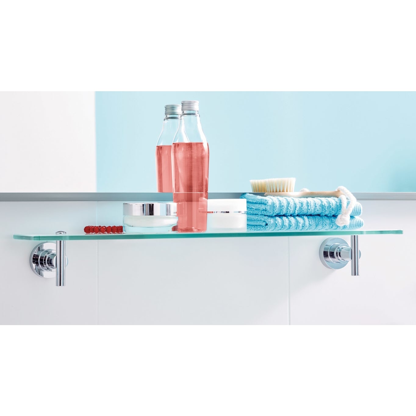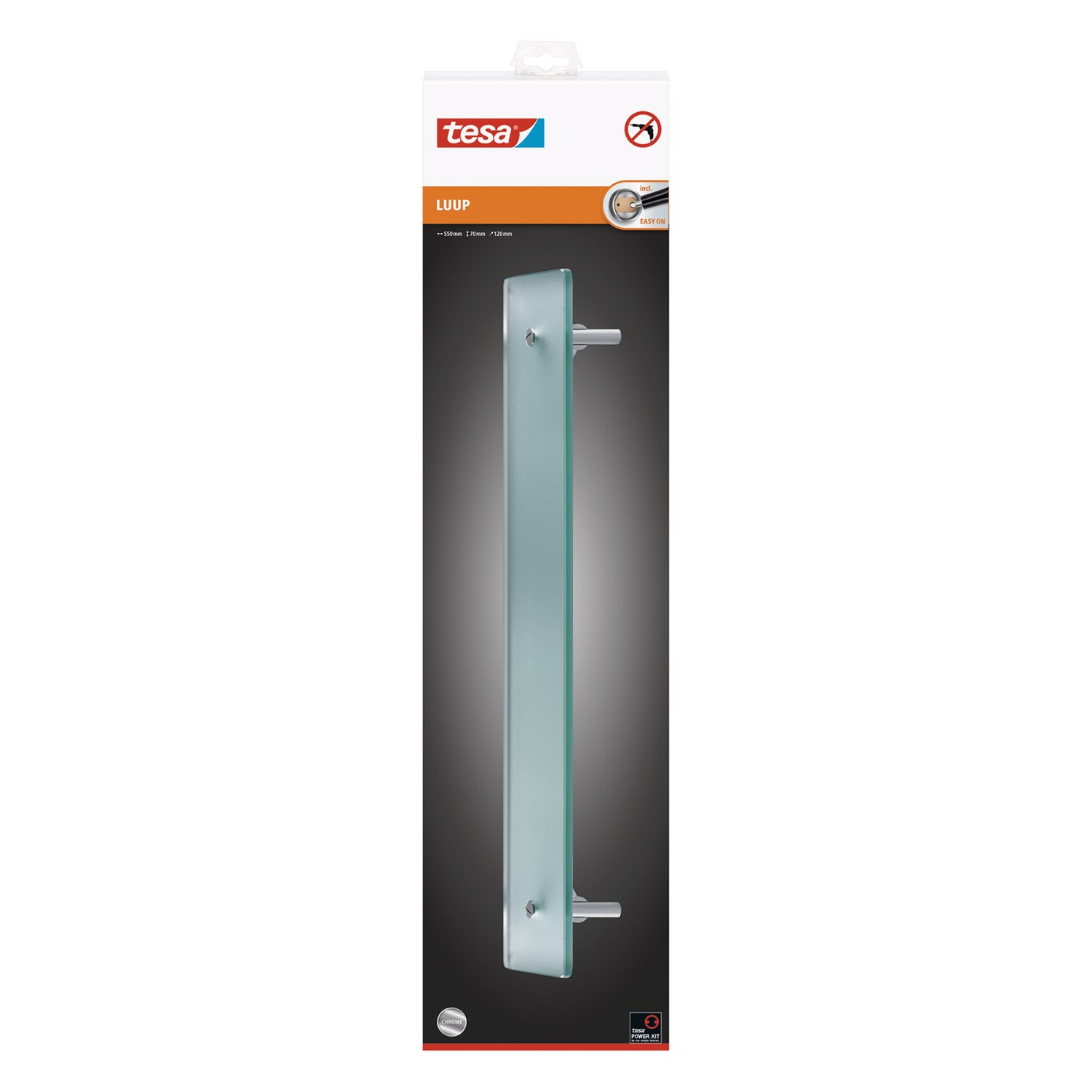 Ordnung fürs Bad, Design fürs Auge: Die Platte aus satiniertem Glas wird von verchromten Wandhaltern getragen - die Badezimmerablage schafft Stauraum und setzt einen optischen Akzent. Leistungsstarke, beständige Klebetechnologie, die keine Bohrlöcher hinterlässt: Die Waschbeckenablage trägt Belastungen bis zu 8 kg - die Wände im Badezimmer bleiben dabei unbeschädigt. Unkomplizierte, saubere Wandmontage: Mit der tesa Power.Kit Technologie zur einfachen Befestigung an der Wand - ohne Bohrmaschine, ohne handwerkliche Vorkenntnisse, ohne den sonst anfallenden Schmutz