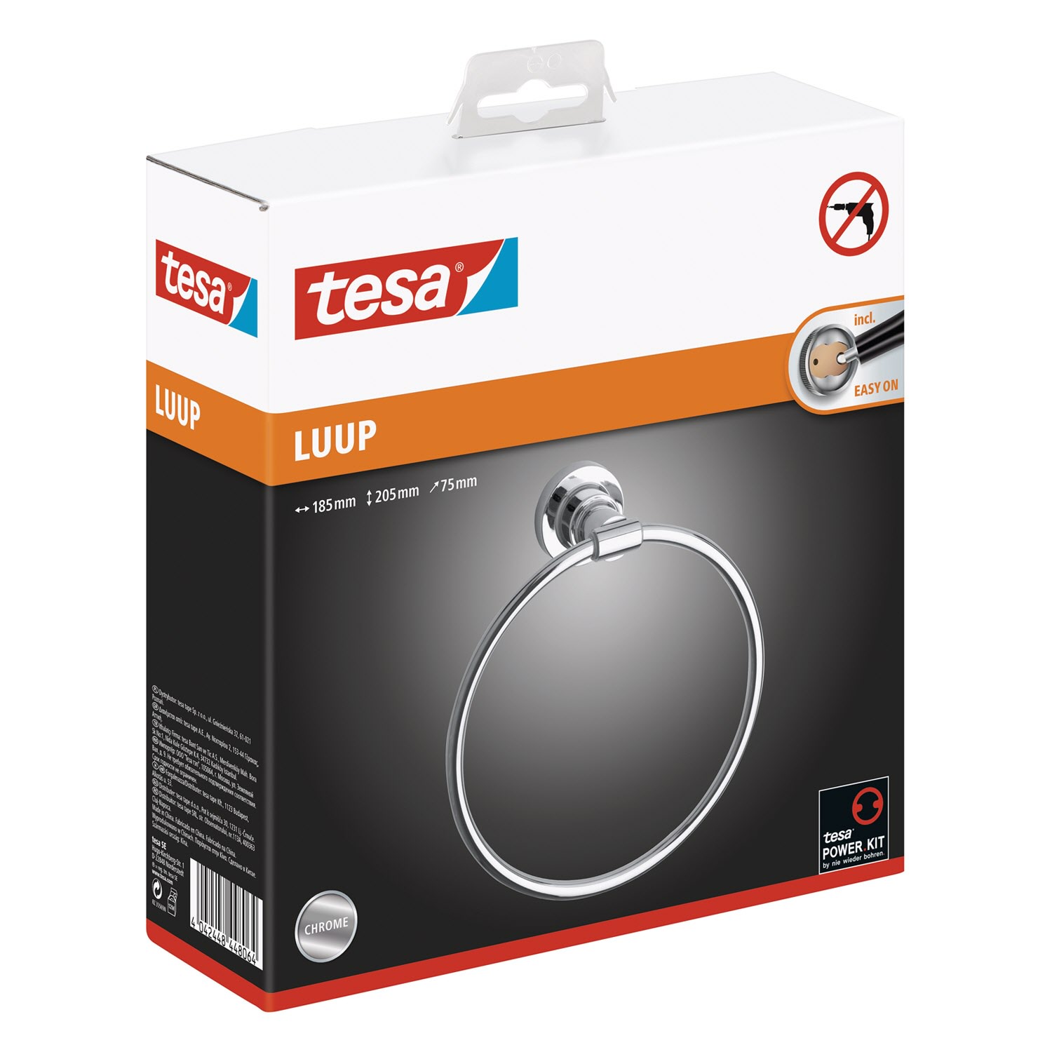 Elegant, kompakt und zeitlos schön: Der verchromte Handtuchhalter in ovaler Form präsentiert Handtücher in Bad. Keine Bohrlöcher hinterlässt: Der Handtuchhalterring trägt Belastungen bis zu 6 kg - die Wände im Badezimmer bleiben dabei unbeschädigt. Unkomplizierte, saubere Wandmontage: Mit der tesa Power.Kit Technologie zur einfachen Befestigung an der Wand - ohne Bohrmaschine, ohne handwerkliche Vorkenntnisse, ohne den sonst anfallenden Schmutz