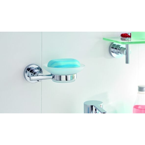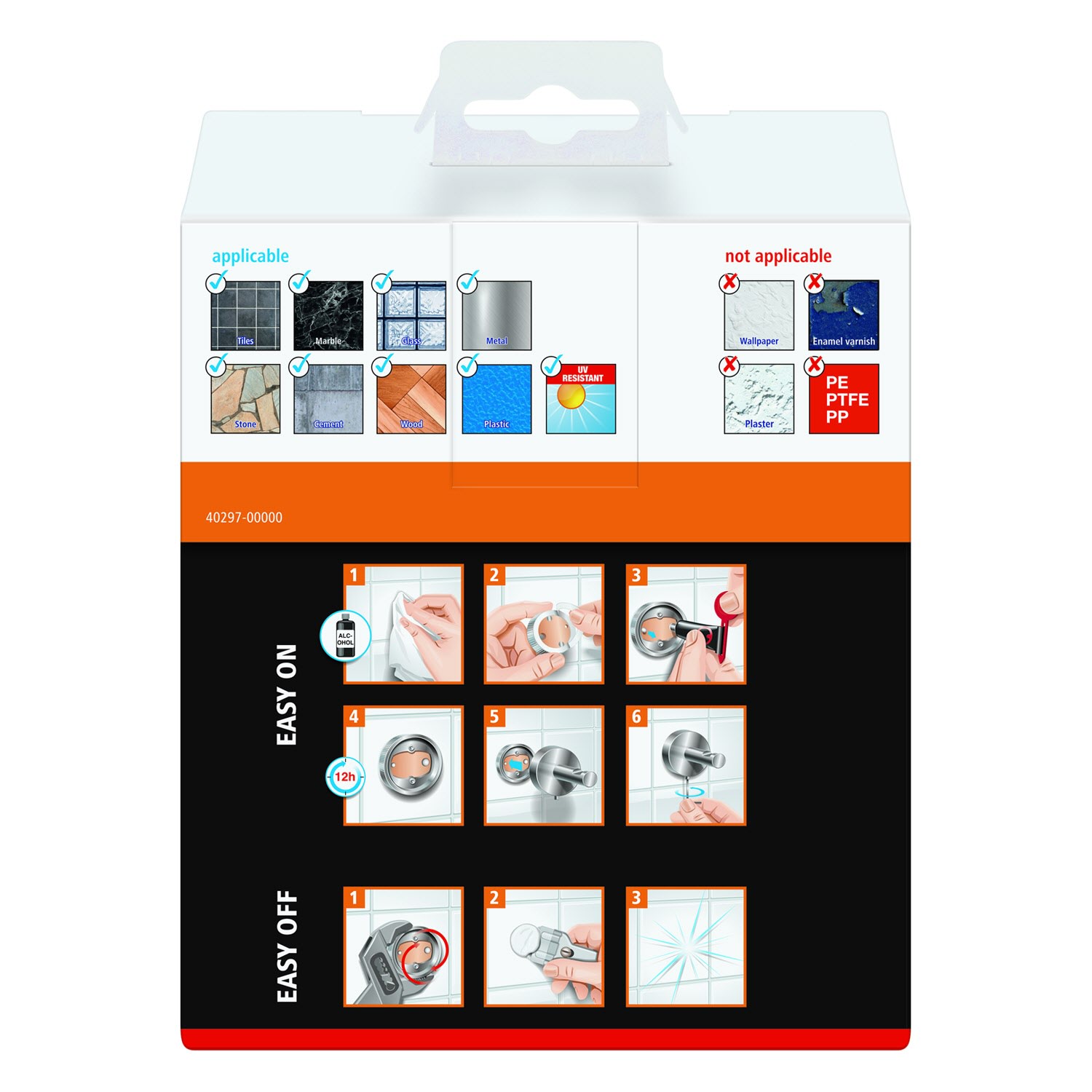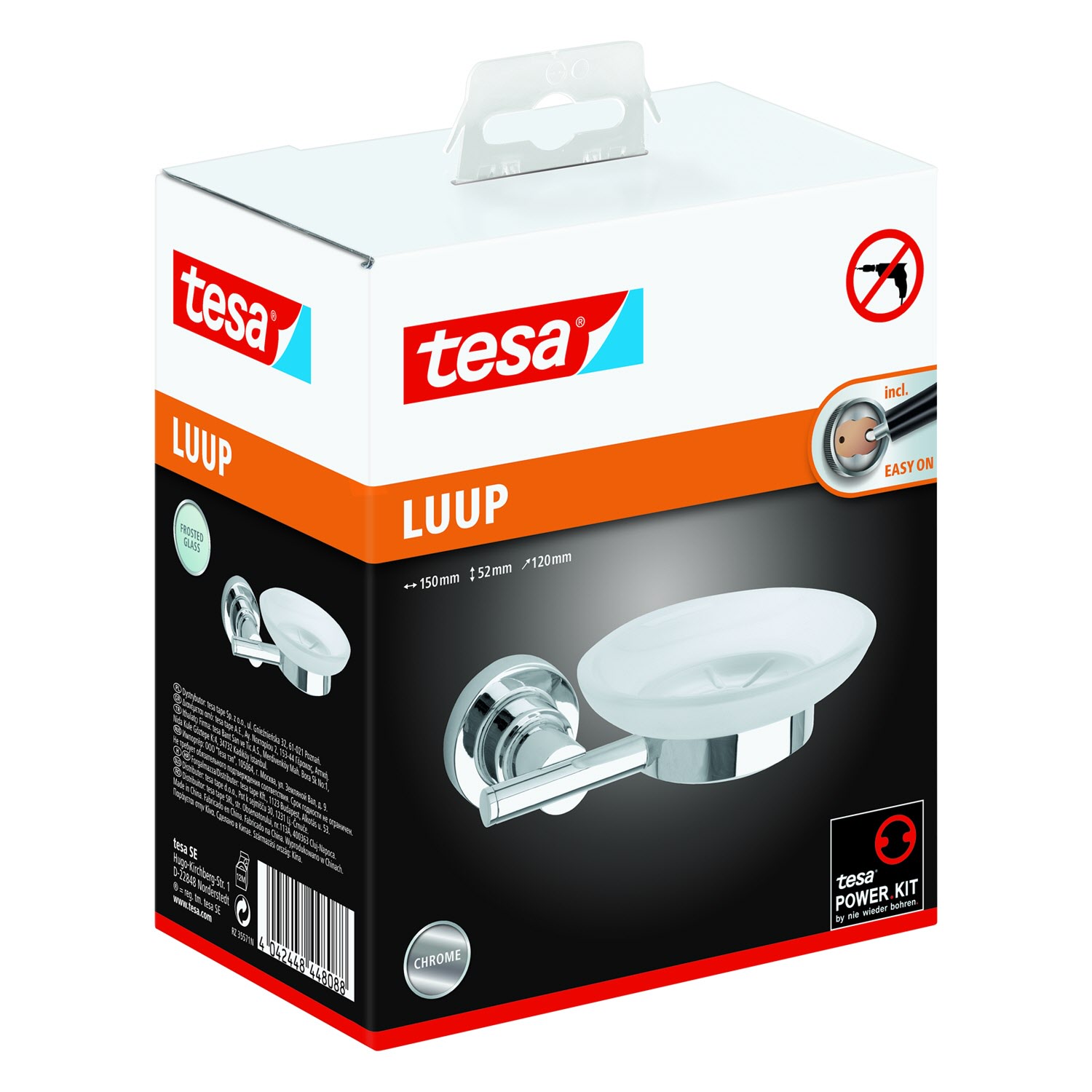 Verchromter Edelstahl ergänzt durch satiniertes Glas: Ideal als Ablage für Handseife, festes Shampoo oder festes Duschgel - und ein elegantes Accessoire. Leistungsstarke, beständige Klebetechnologie, die keine Bohrlöcher hinterlässt: Der Seifenhalter trägt Belastungen bis zu 6 kg - die Wände im Badezimmer bleiben dabei unbeschädigt. Unkomplizierte, saubere Wandmontage: Mit der tesa Power.Kit Technologie zur einfachen Befestigung an der Wand - ohne Bohrmaschine, ohne handwerkliche Vorkenntnisse, ohne den sonst anfallenden Schmutz