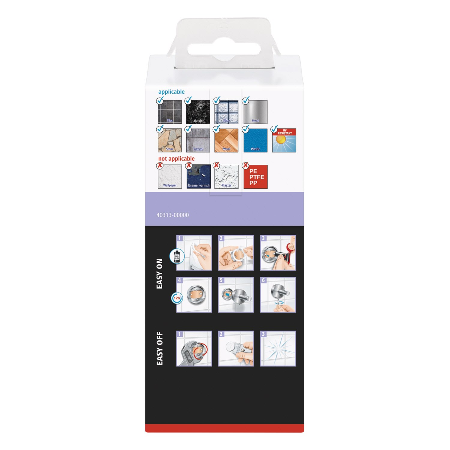 - nicht geeignet für Putz, Tapeten, Wandtextilien und Kunststoffe wie PP, PE und PTFE