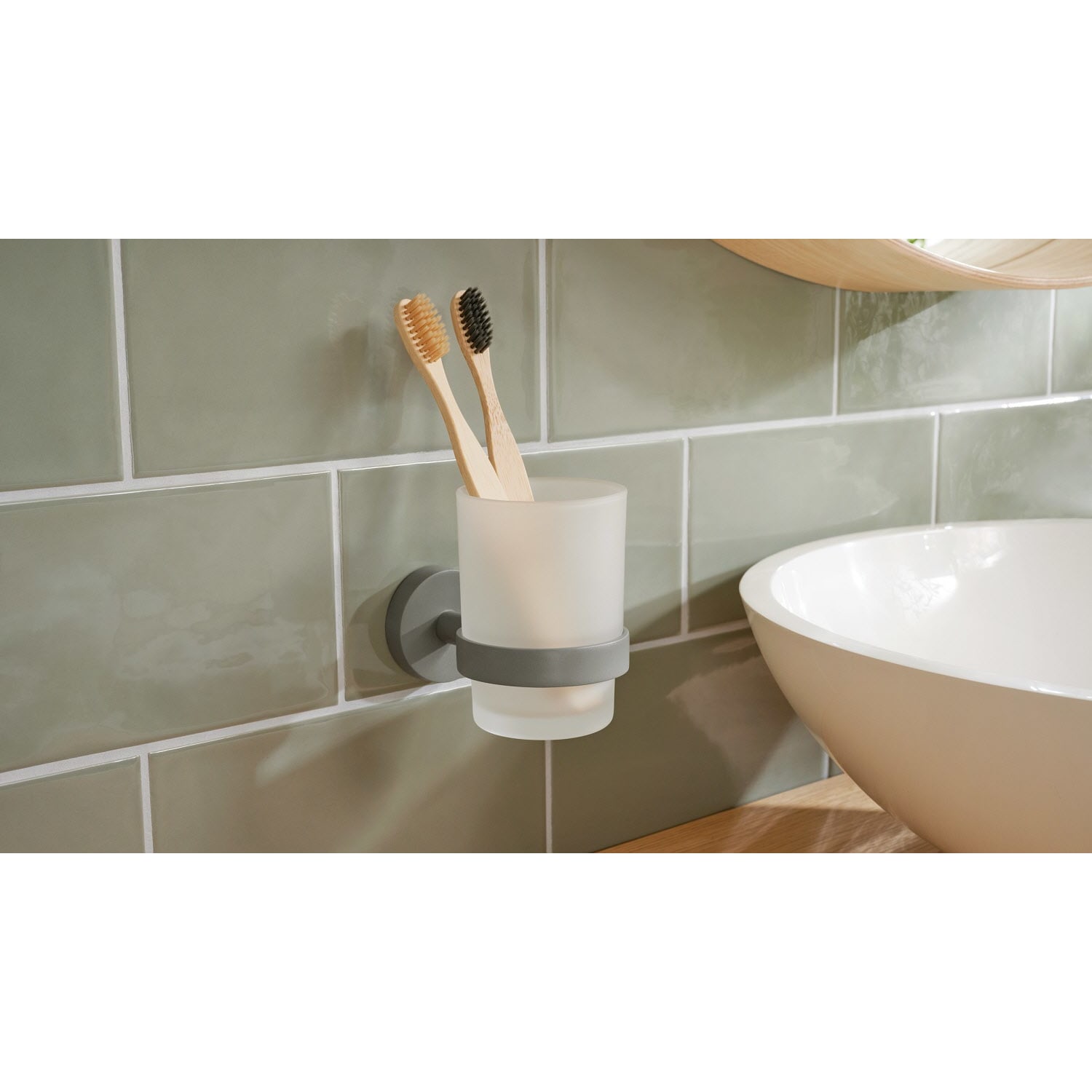tesa MOON GREY Zahnputzbecher mit Wandhalterung
